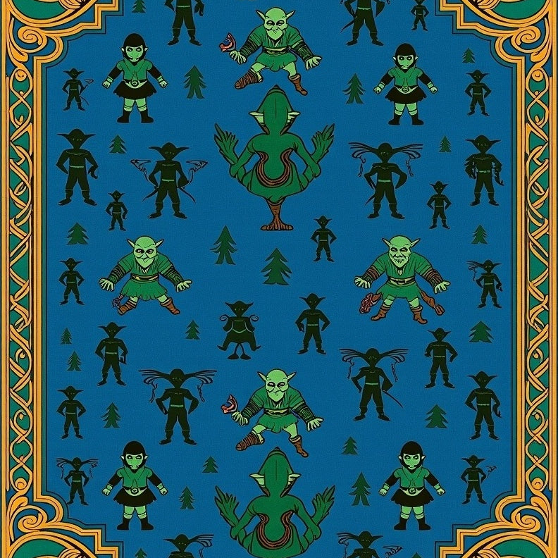 Festive Goblin Folklore Design Anti Slip Holiday Accent Throw(Blue)