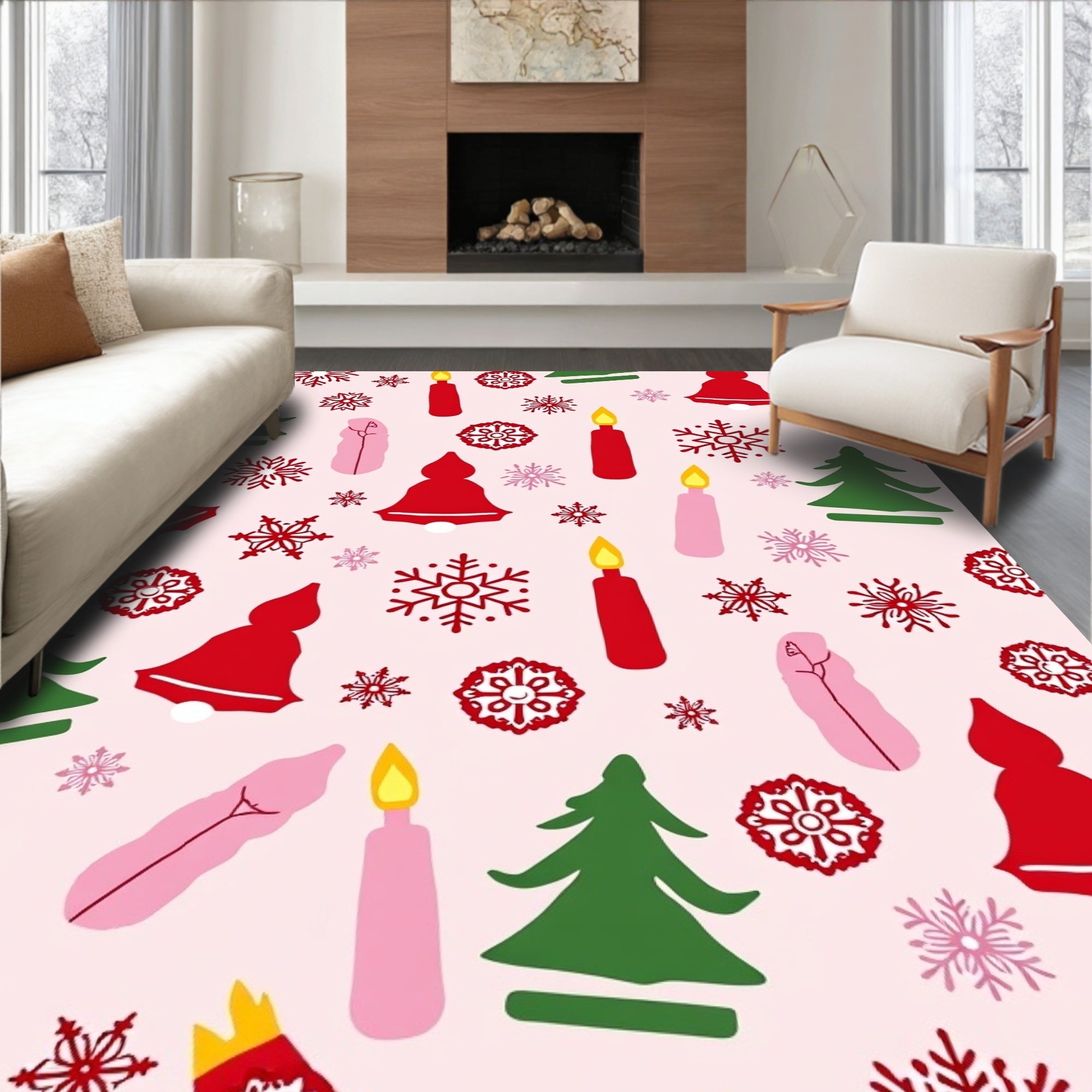 Festive Gnome Snowflake Medallion Doormat with Holiday Candles Design(Pink)