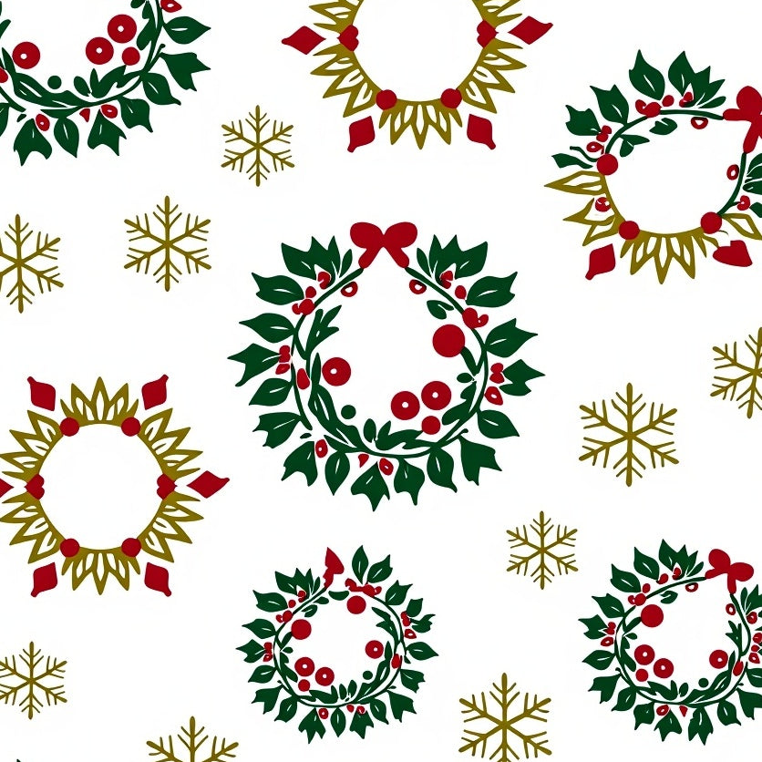 Festive Holly Berry Wreath Area with Snowflake Accents(Green)