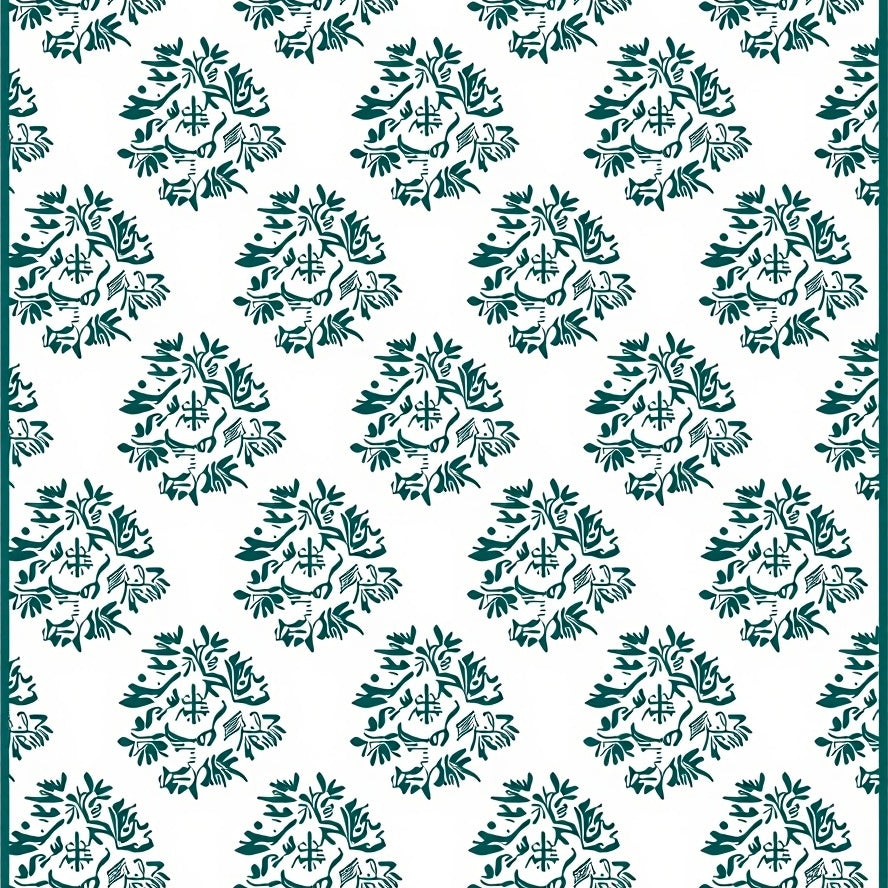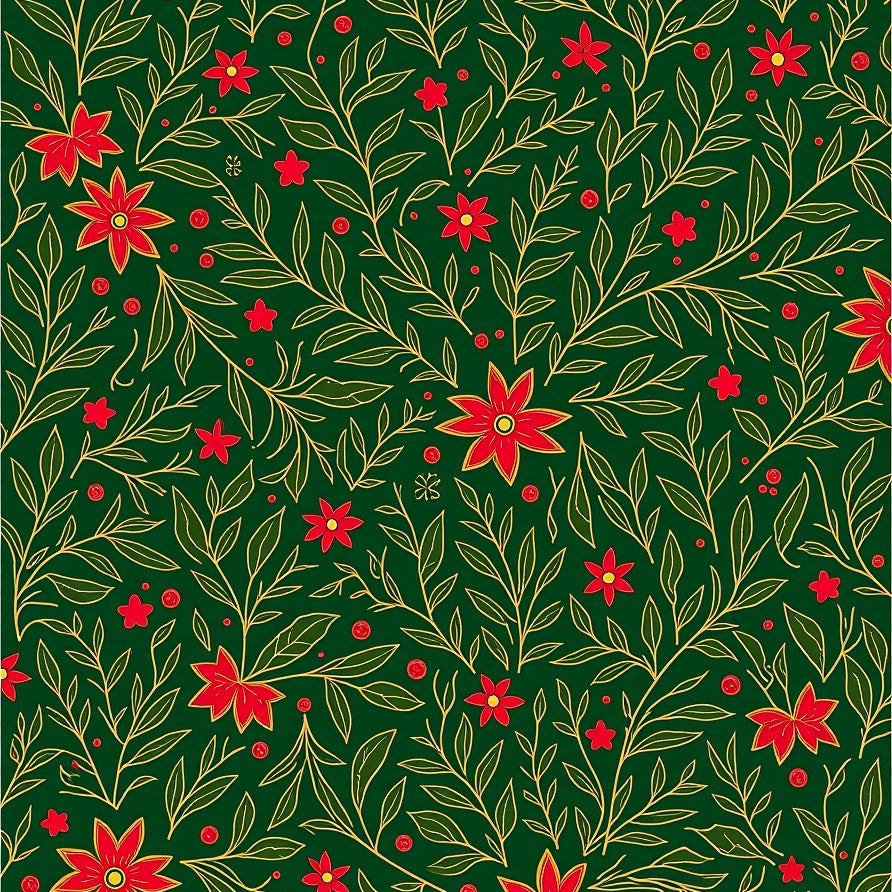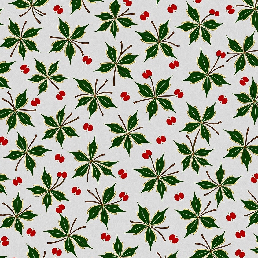 Festive Holly and Berries with Interlocking Leafy Vines Twinkling Dots(Green)