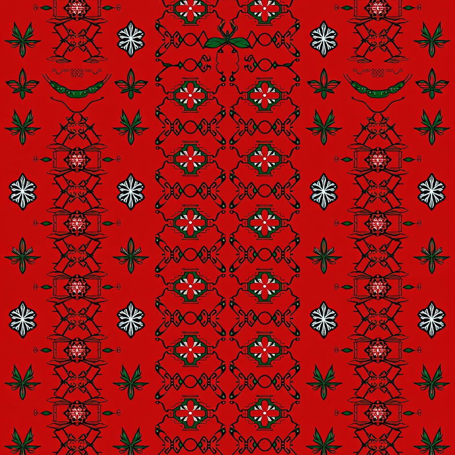 Festive Holly Berry Scrollwork with Vintage Lattice Motifs(Red)