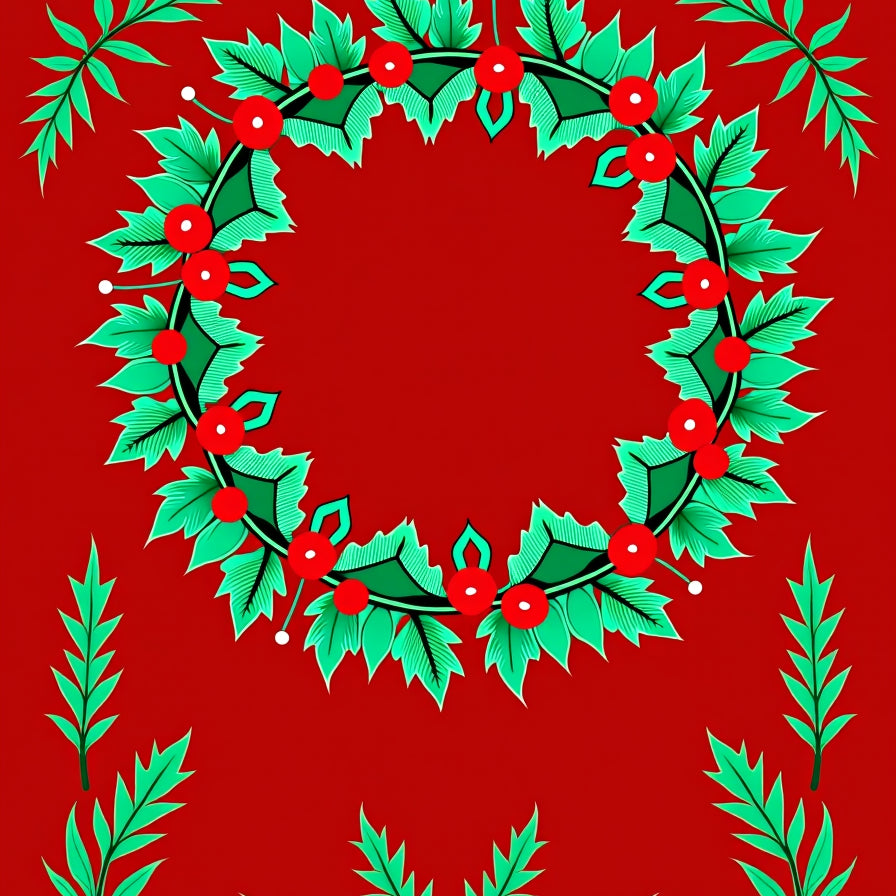 Festive Holly Leaf Medallion with Intricate Border Details(Red)