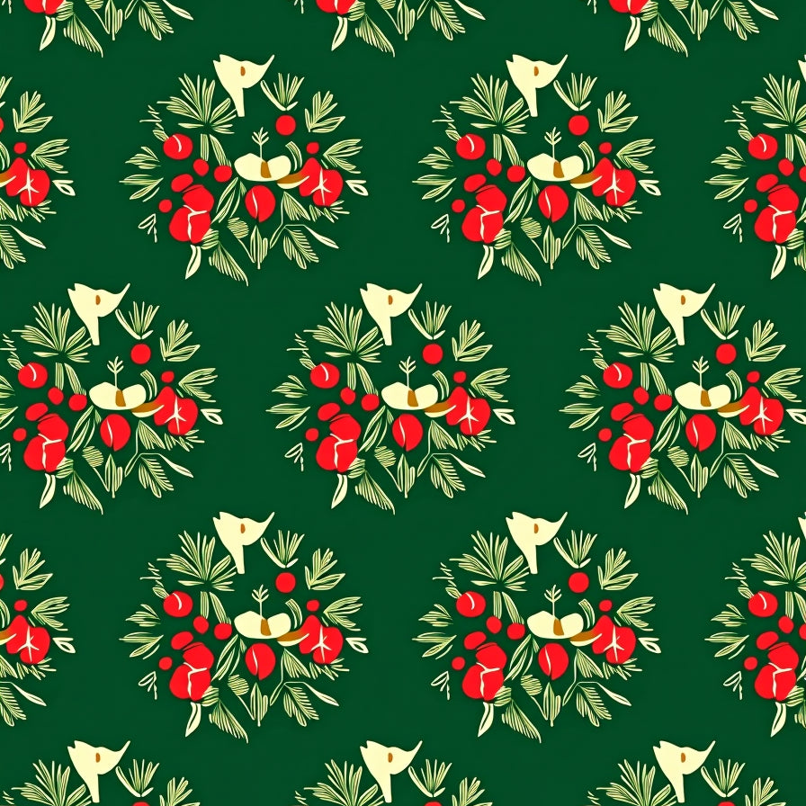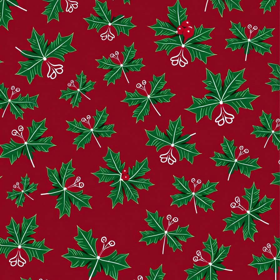 Festive Holly Leaf Motif with Seasonal Berry Accents(Red)