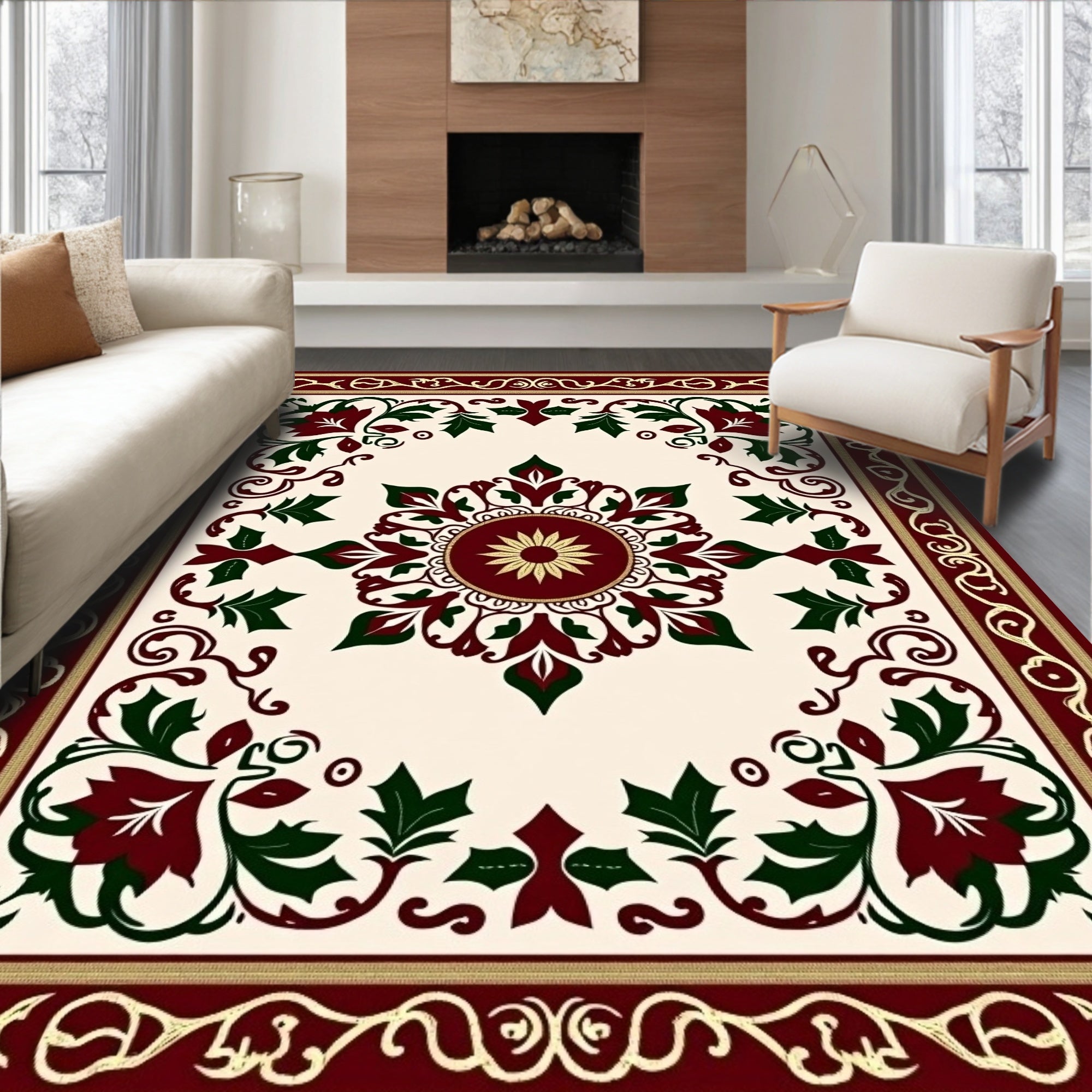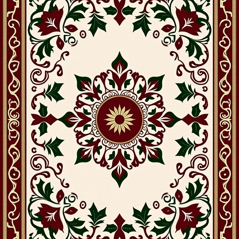 Festive Holly Blossom Medallion with Vintage Scrollwork Motifs(Ivory)