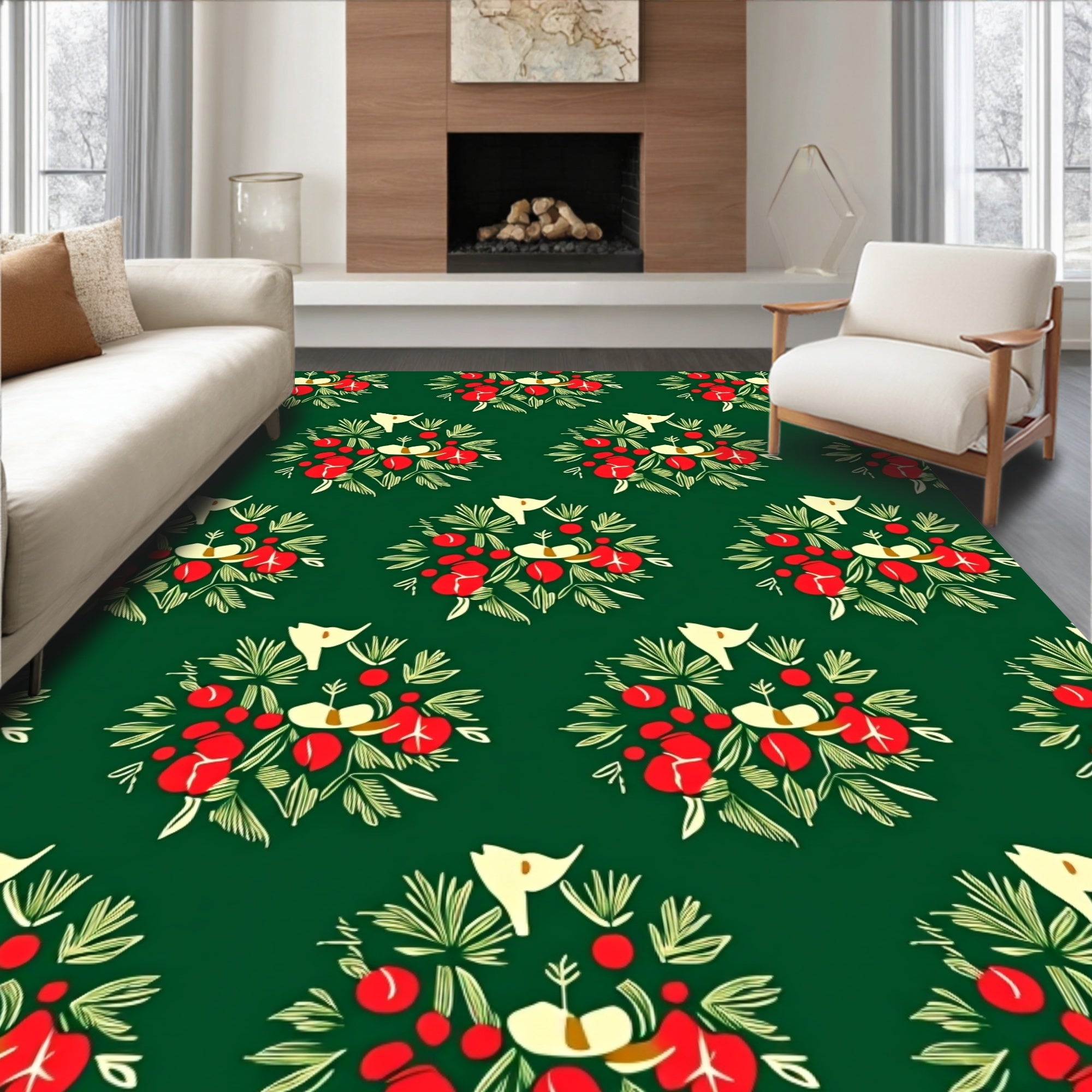 Festive Holly Berry Wreath Holiday Themed Floor(Red)