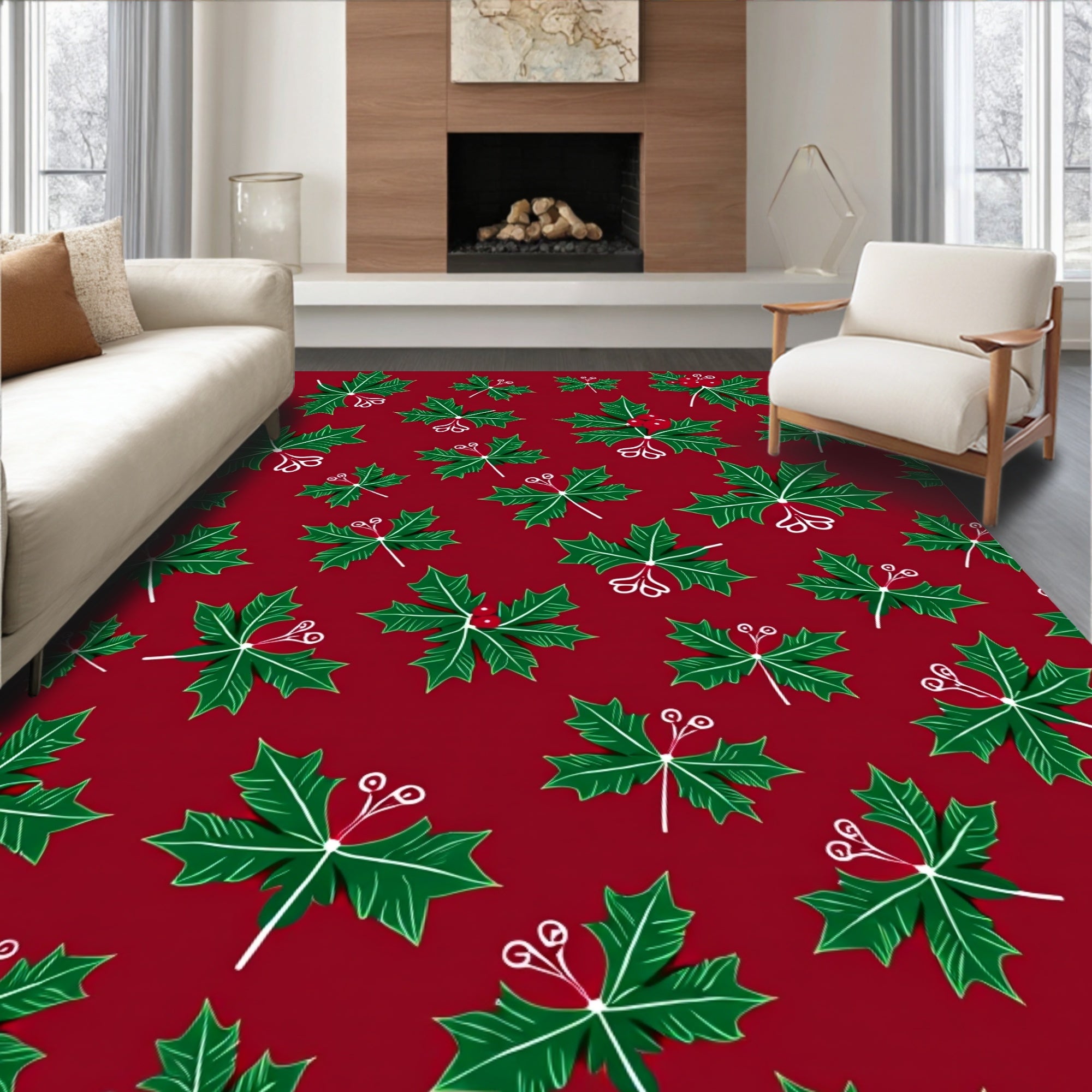 Festive Holly Leaves Berry Motif Holiday Area Snowflake Design(Red)