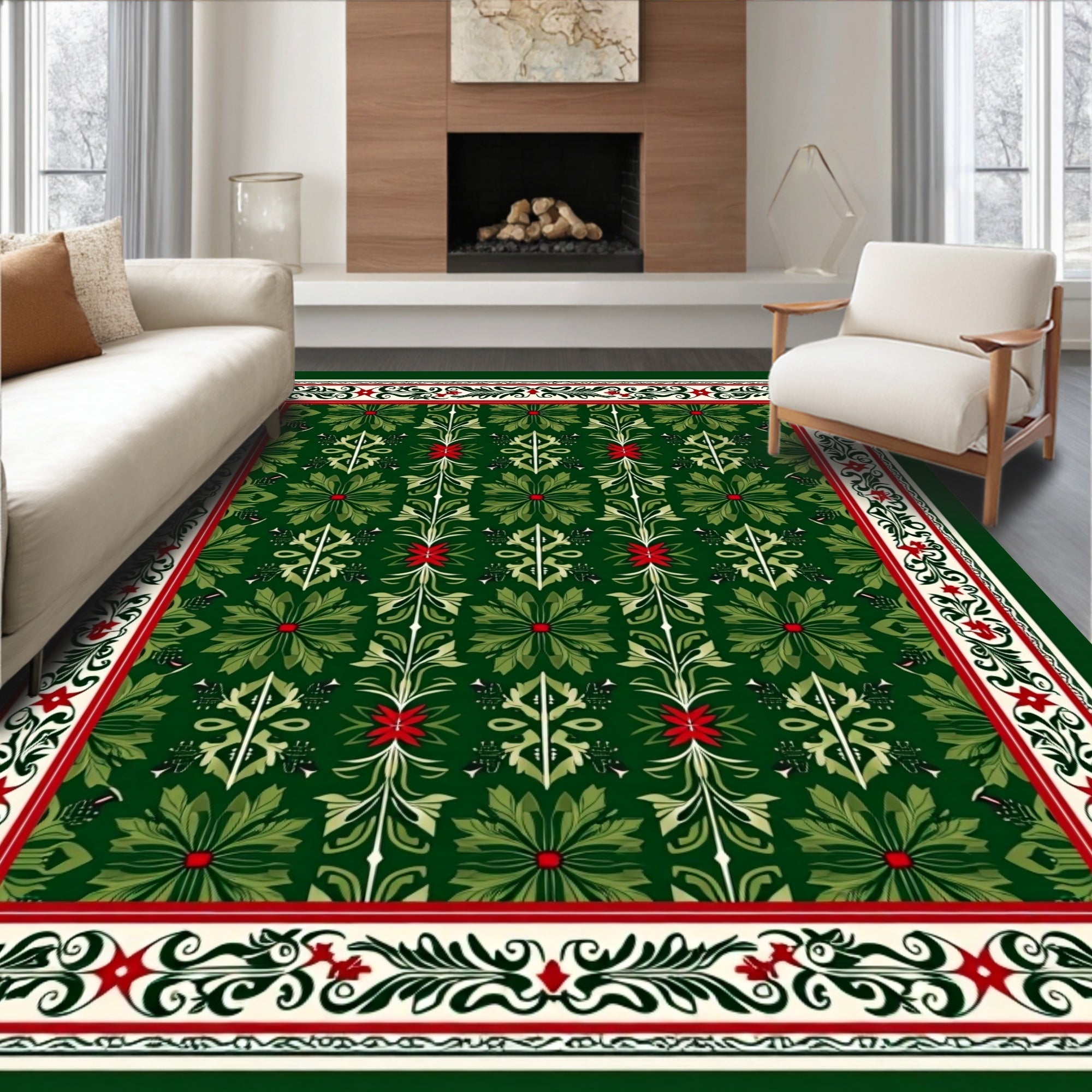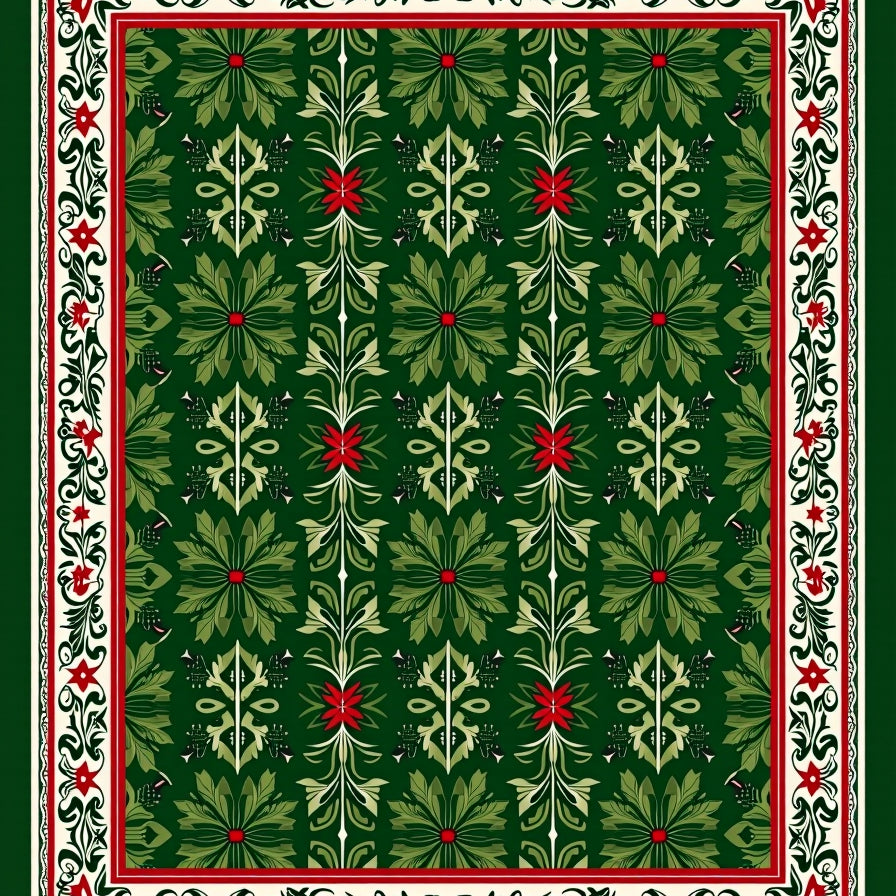 Festive Holly Wreath Area with Intricate Botanical Design(Green)
