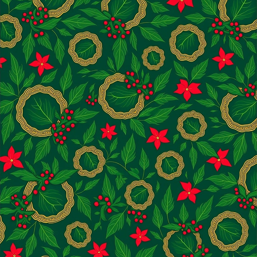 Festive Holly Wreath with Interlocking Border Design(Green)