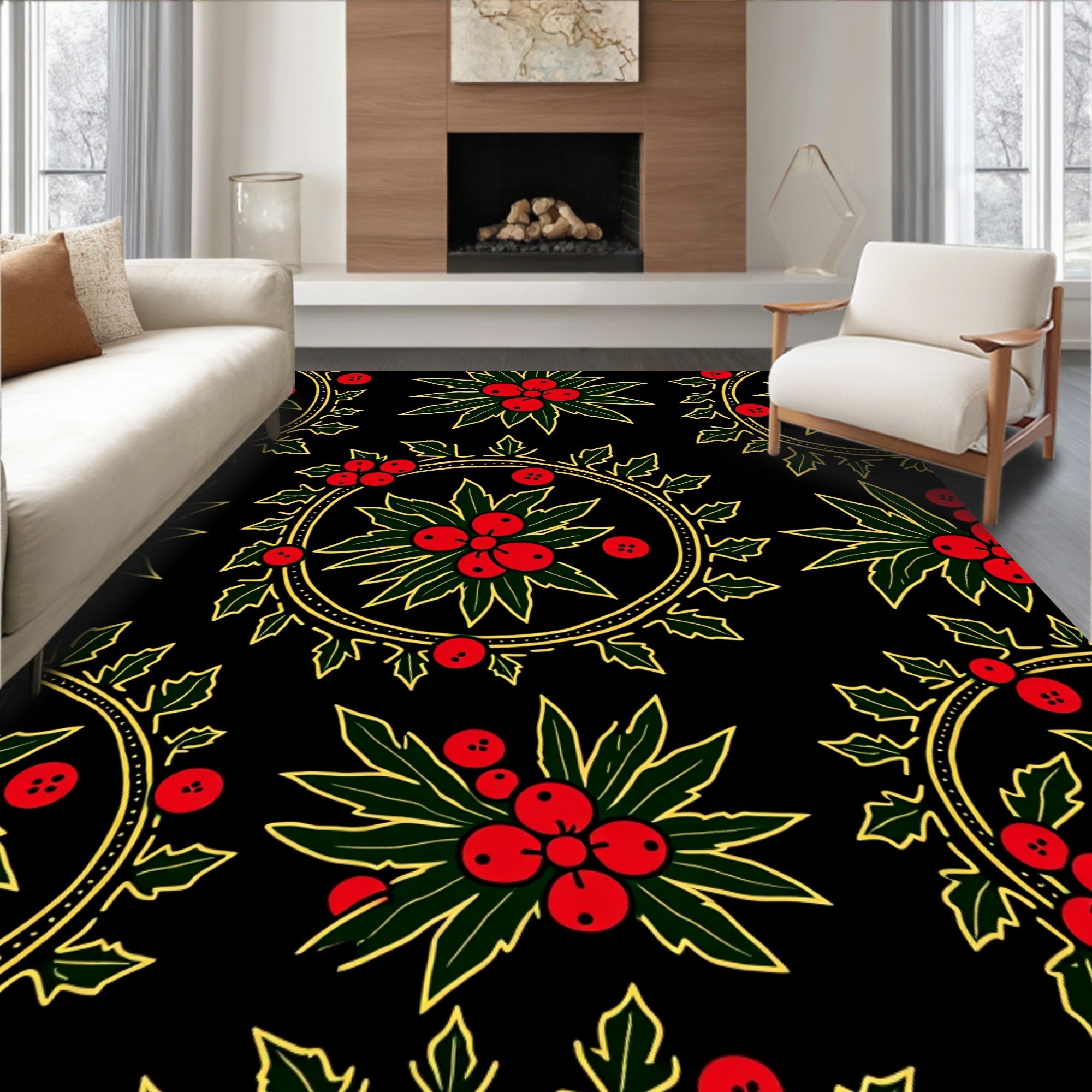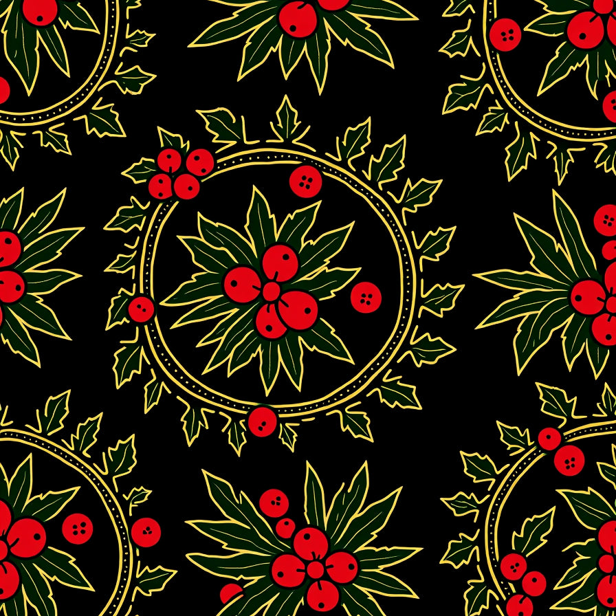 Festive Holly Wreath Area with Traditional Motifs(Black)