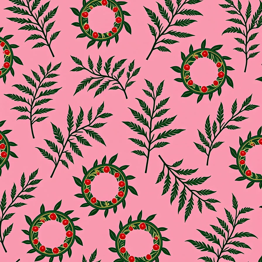 Festive Holly Wreath Motif With Interlocking Ivy Vines(Pink)