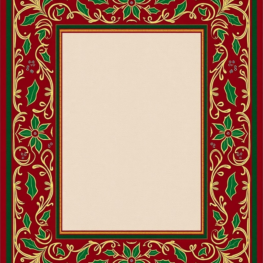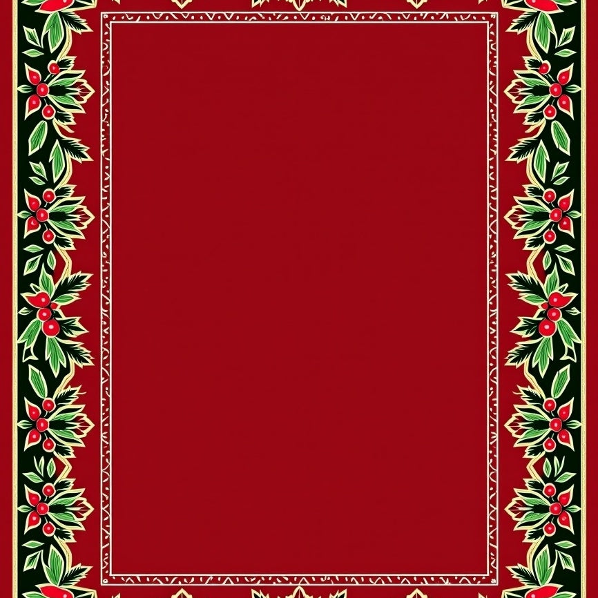 Festive Holly Vine Border Design with Traditional Holiday Leaf Scrollwork(Red)
