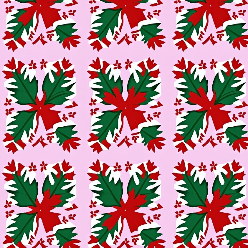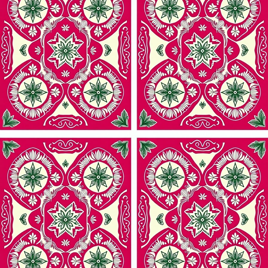 Festive Mosaic with Interlocking Holiday Flourishes(Red)
