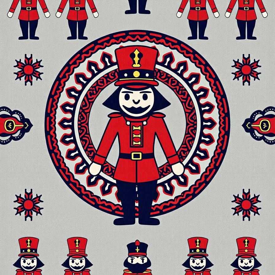 Festive Nutcracker and Snowflake Interlocking Medallion Area(Purple)