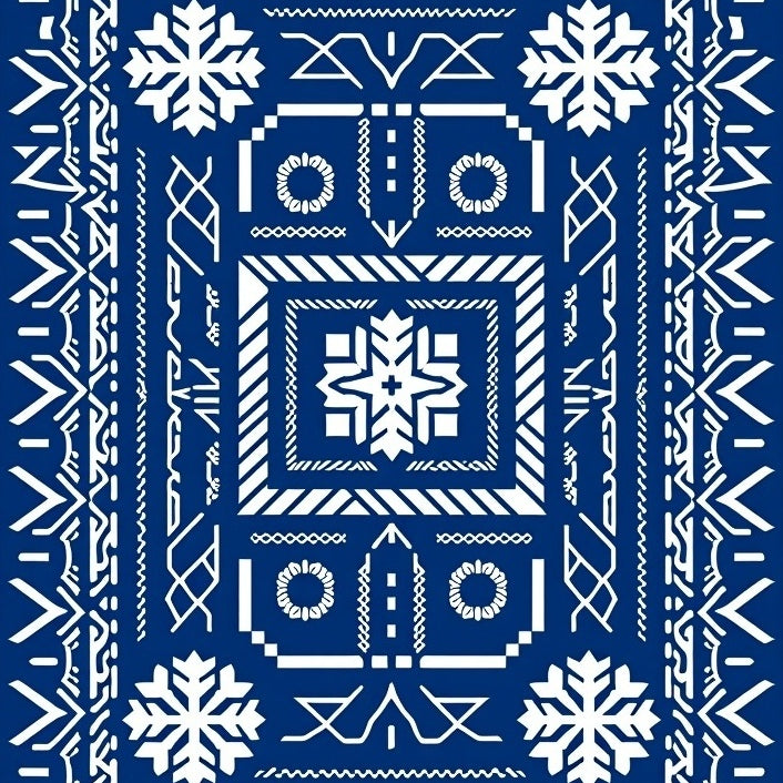 Festive Nordic Snowflake with Vintage Chevron Detailing(Blue)