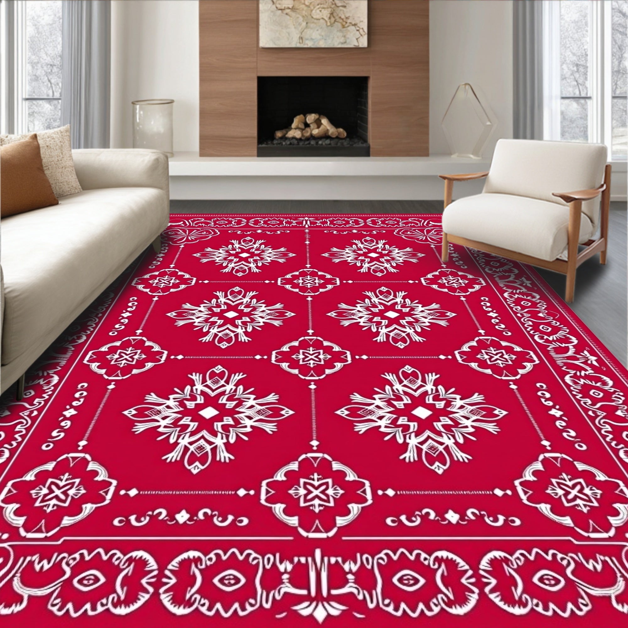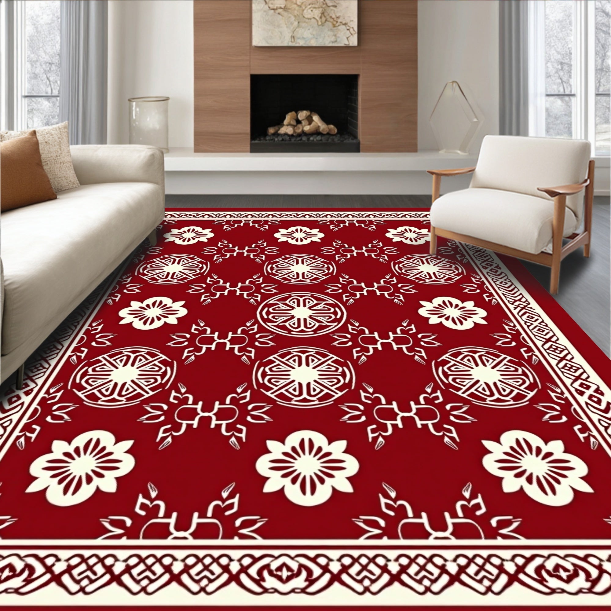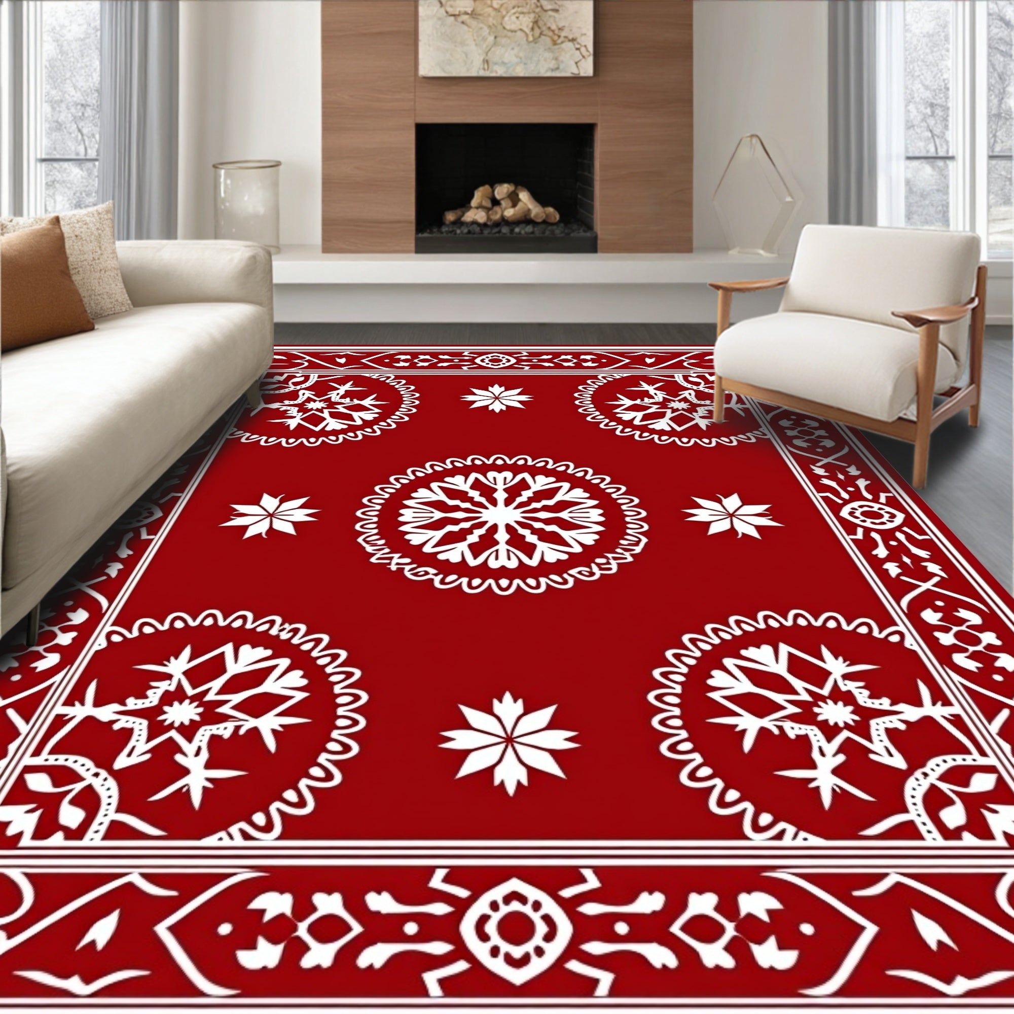 Festive Nordic Snowflake Motif with Interlocking Accents Holiday(Red)
