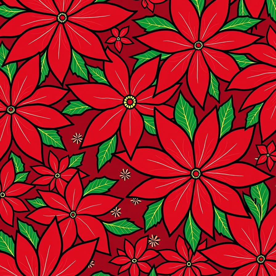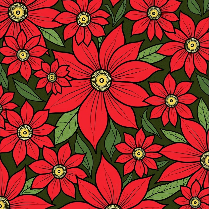 Festive Poinsettia Floral Medallion Vintage Decorative(Red)