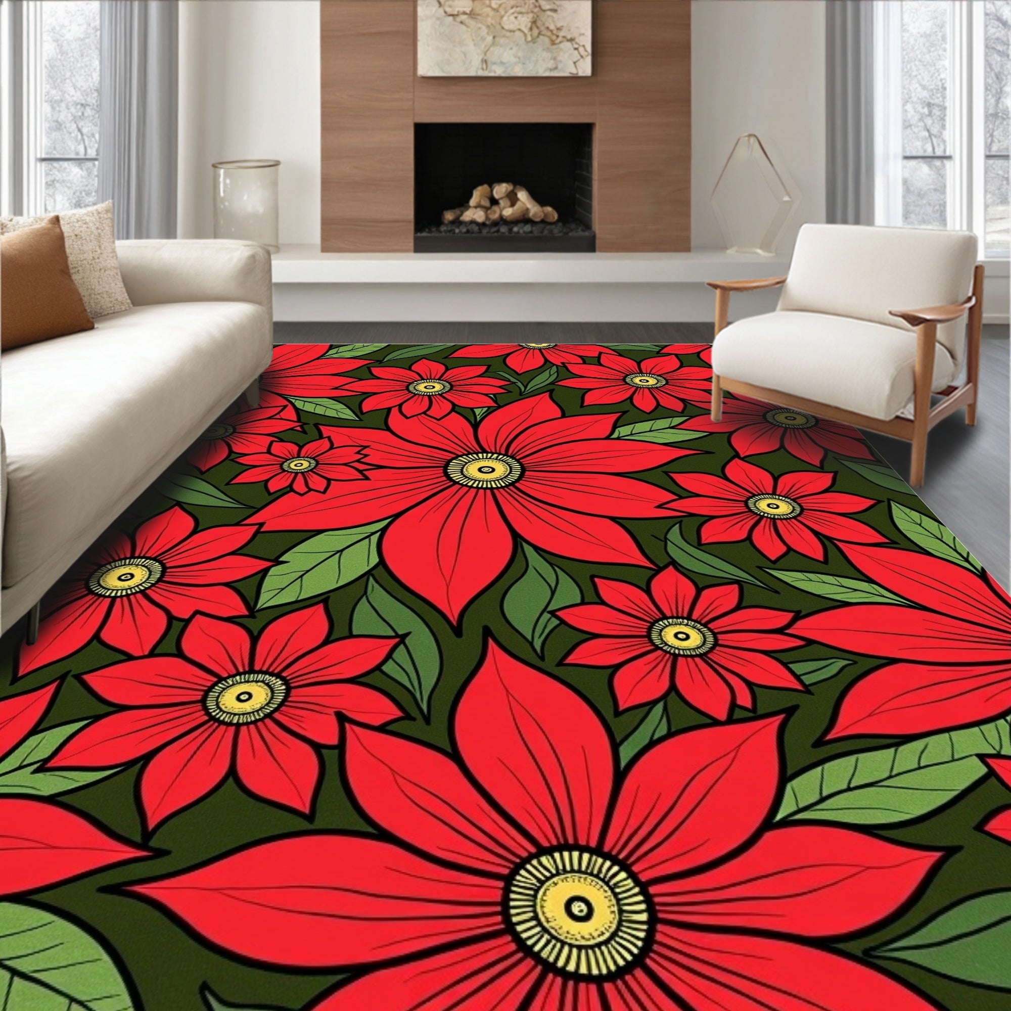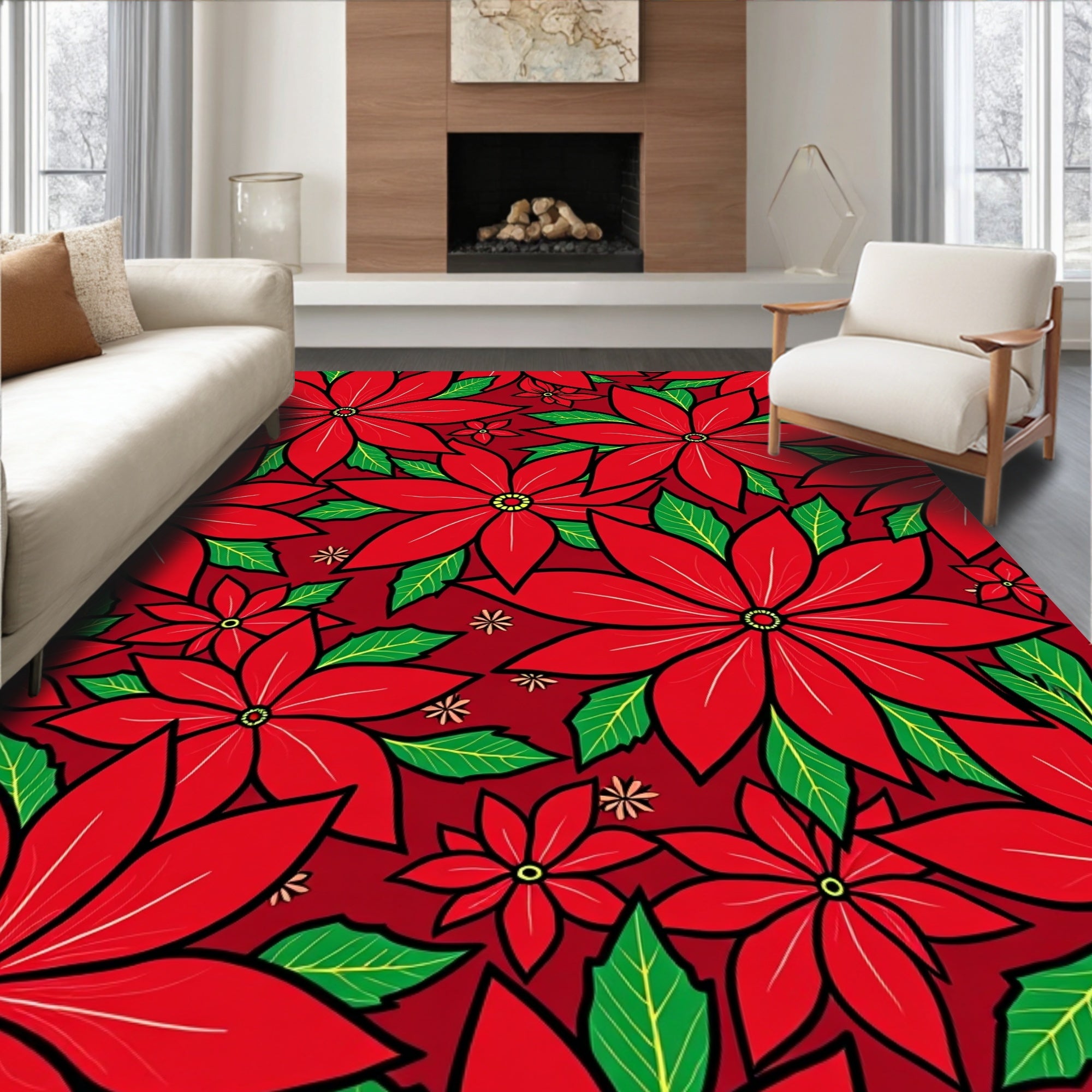 Festive Poinsettia Bloom Indoor Floor Covering with Floral Accents(Red)
