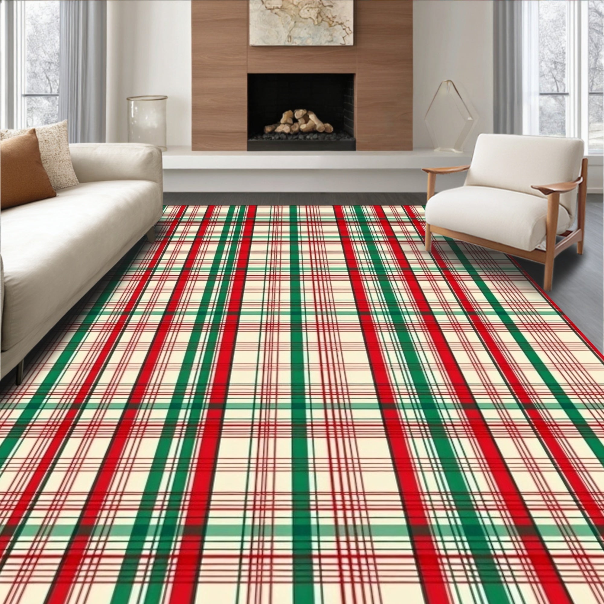 Festive Plaid Holiday Decorative Floor Covering(Red)