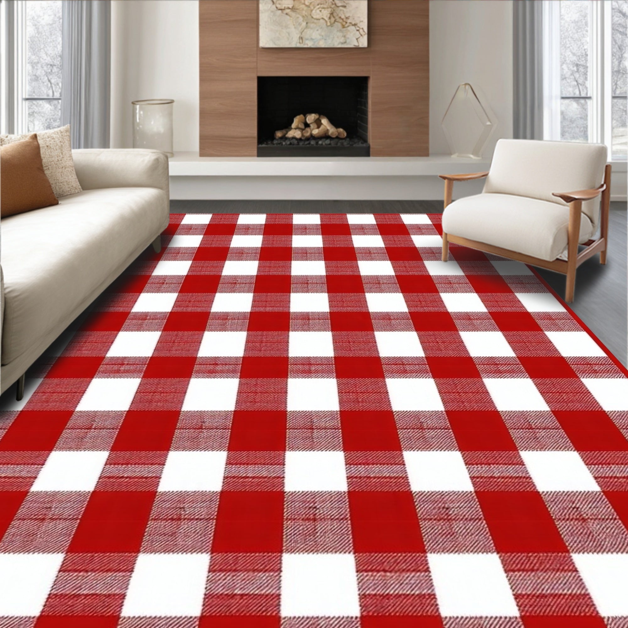 Festive Red White Plaid Area Rug for Holiday Entryway Cheer(Red)