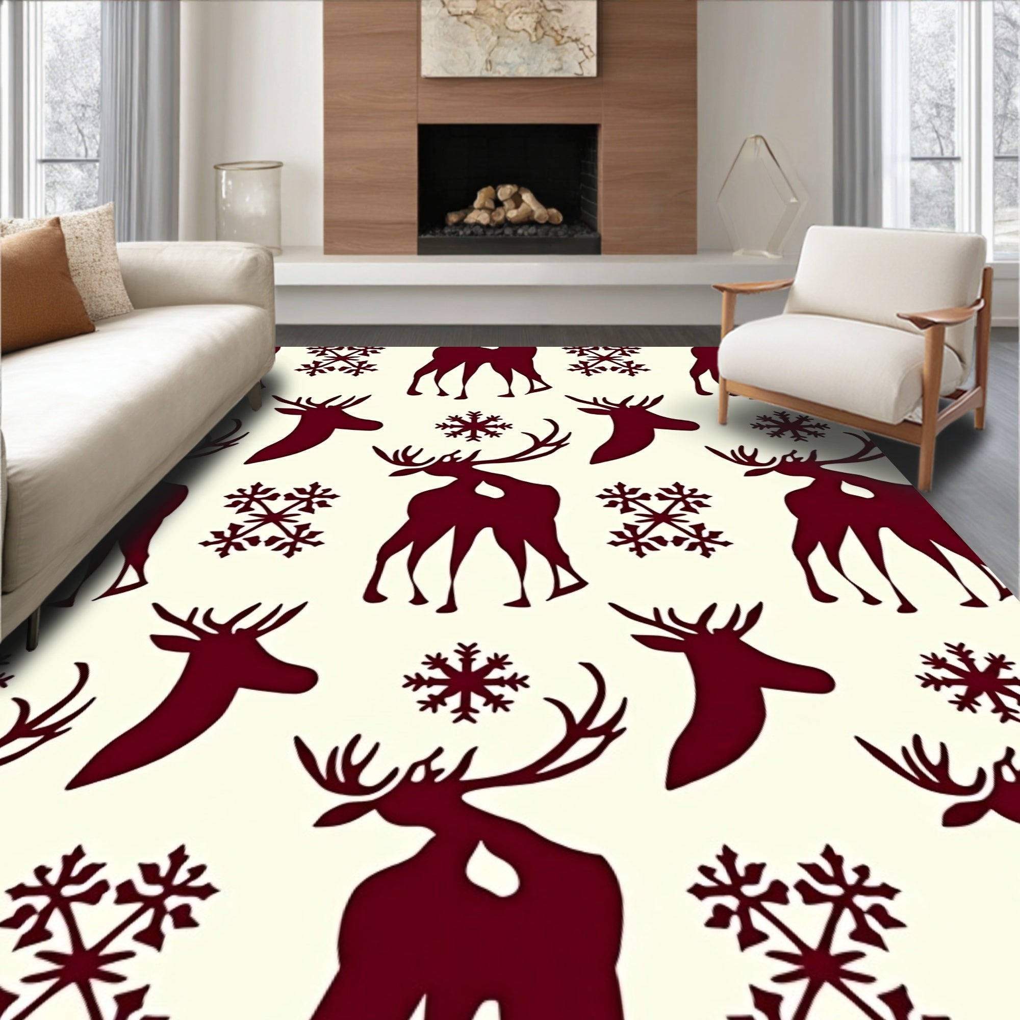 Festive Reindeer Area with Snowflake Motifs(Red)