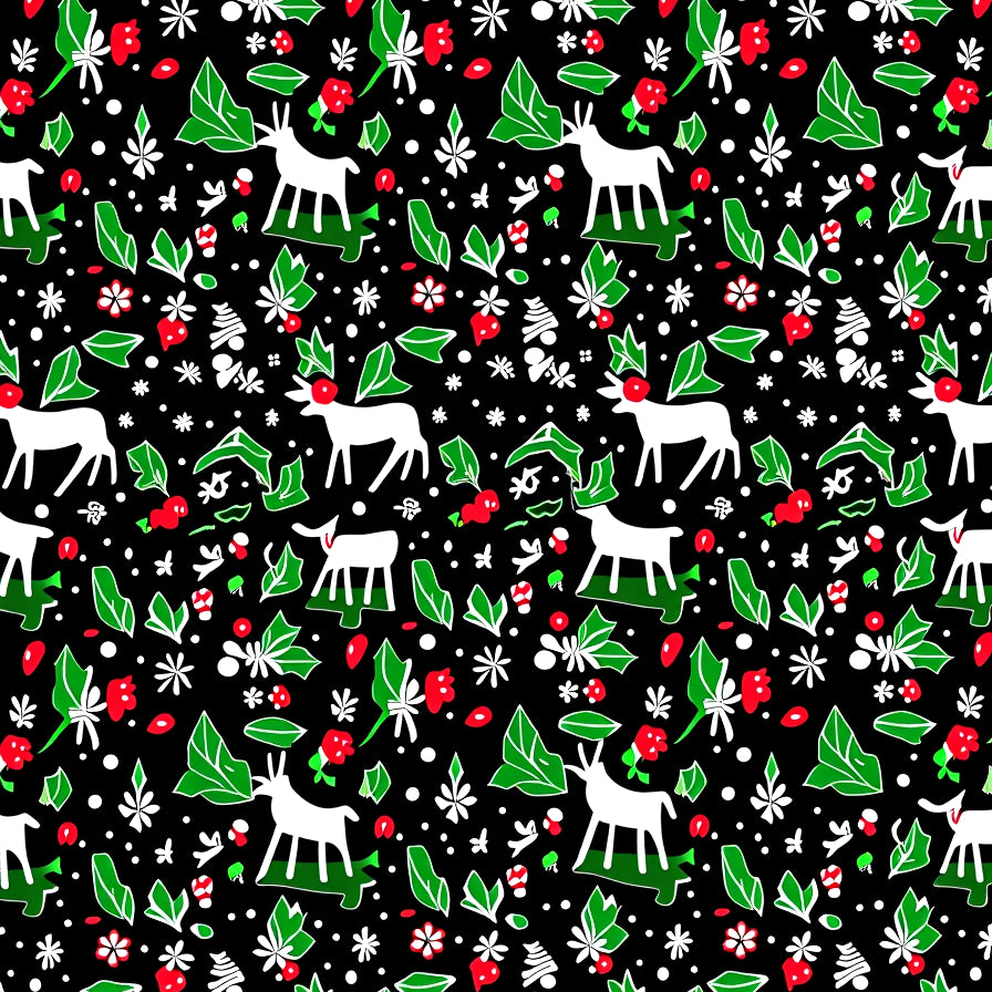 Festive Reindeer with Scattered Snow Dot and Holly Leaf(Black)