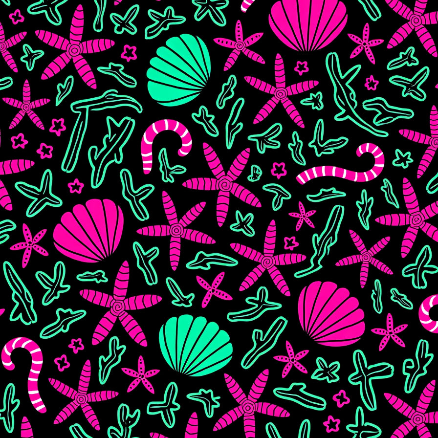 Festive Seashell Wonderland Motif with Whimsical Holiday Accents(Black)