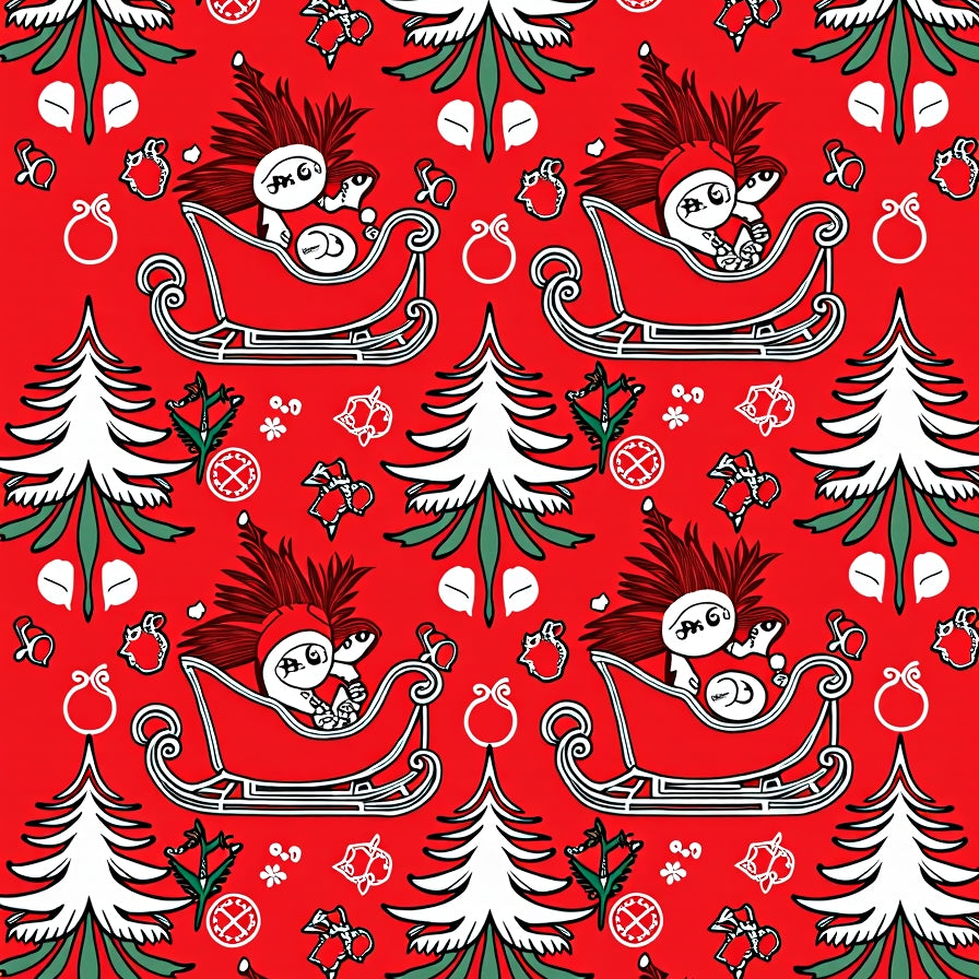 Festive Santa Sleigh and Pine Tree Motif with Snowflake Accents(Red)