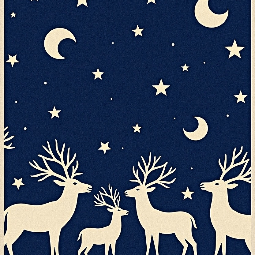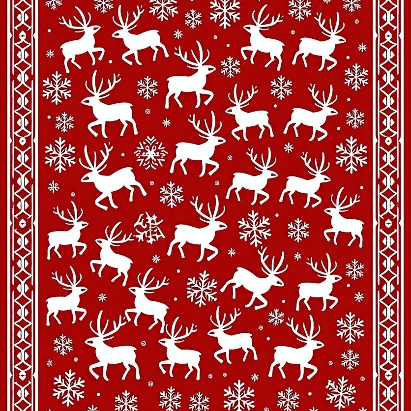 Festive Reindeer Silhouettes with Holly and Pine Needle Motifs(Green)