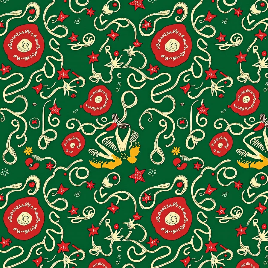 Festive Scrollwork with Interlocking Snow Crystal Details(Red)