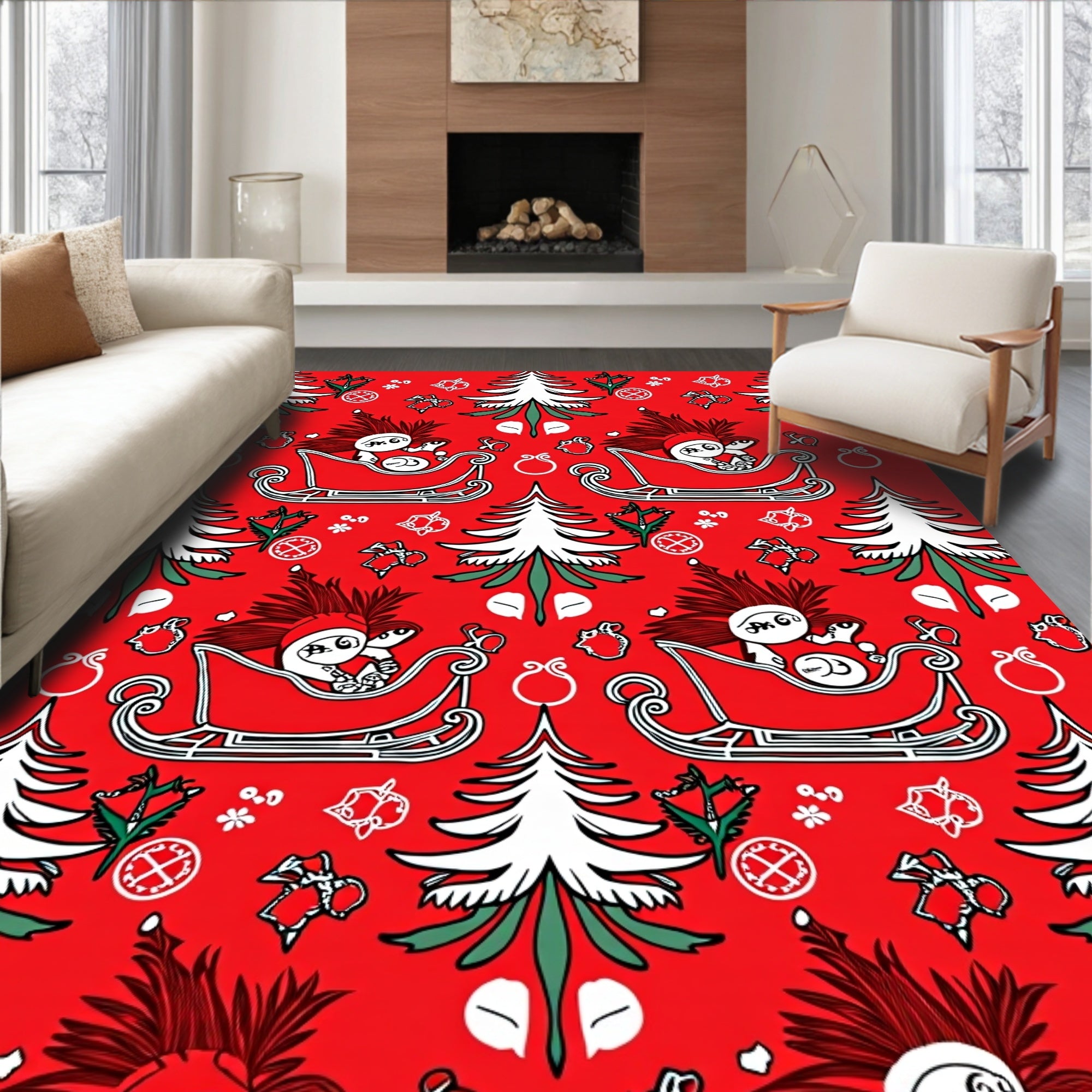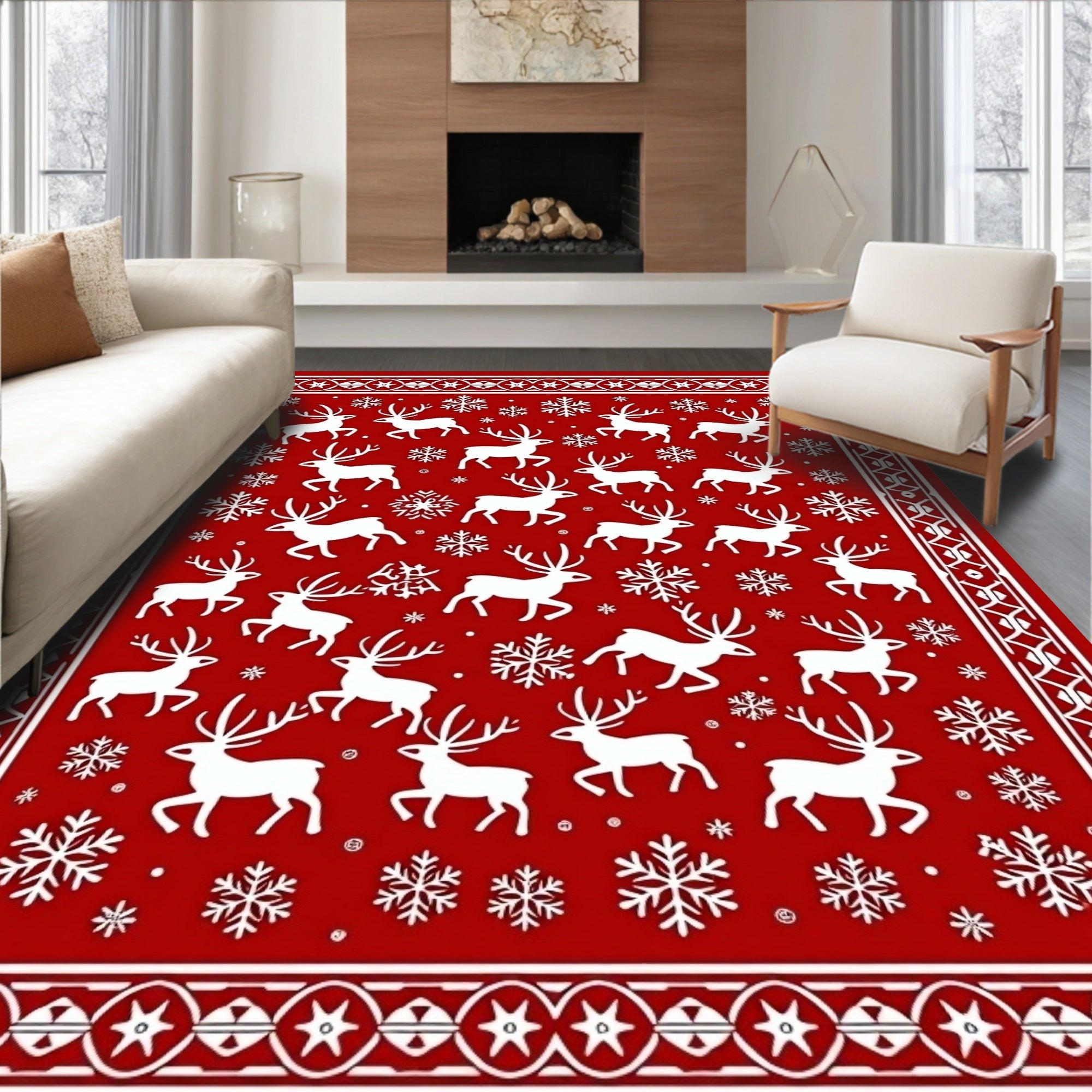 Festive Reindeer Holiday Decorative Floor With Snowflake(Red)