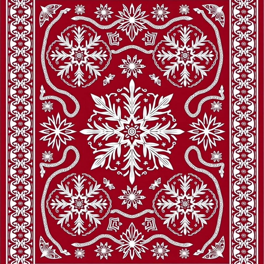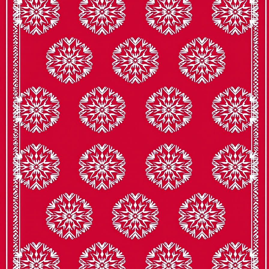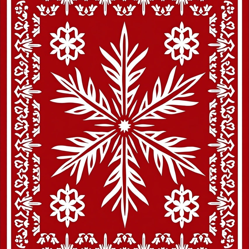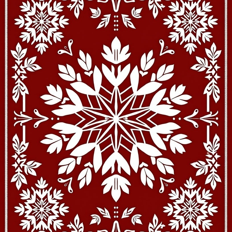 Festive Snowflake Medallion Holiday Area with Intricate Winter Motifs(Red)