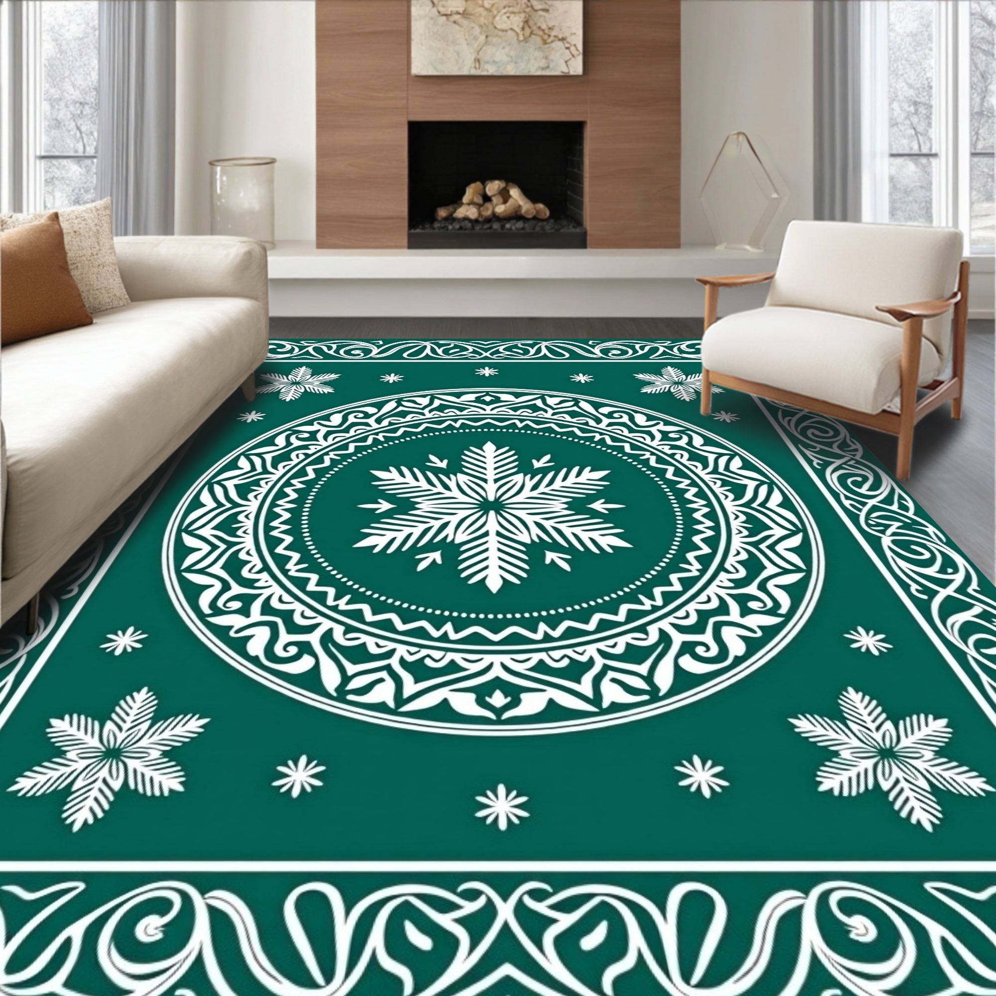 Festive Snowflake Medallion Holiday Decorative Floor Covering(Green)