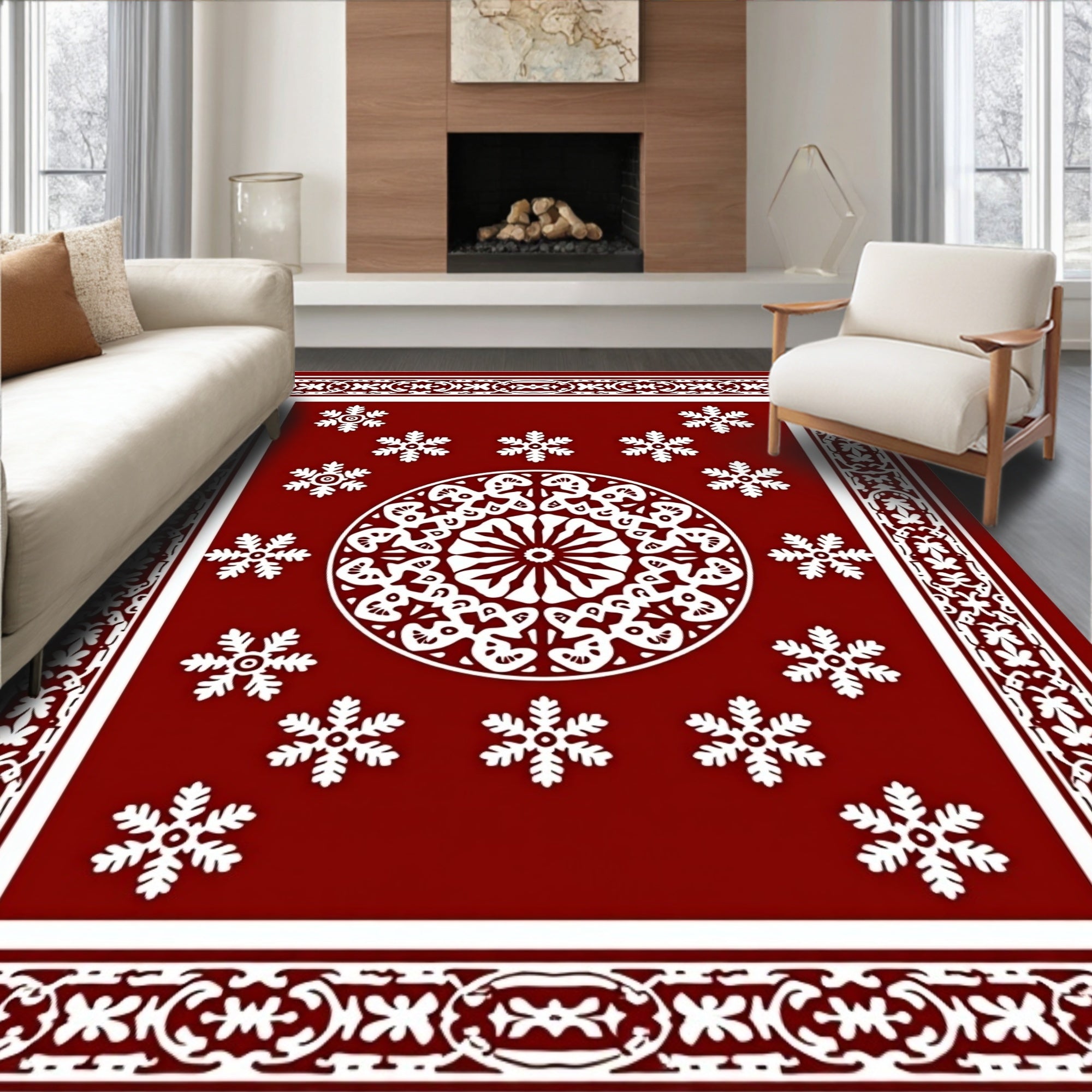 Festive Snowflake Medallion Winter Holiday Decorative Floor Covering(Red)