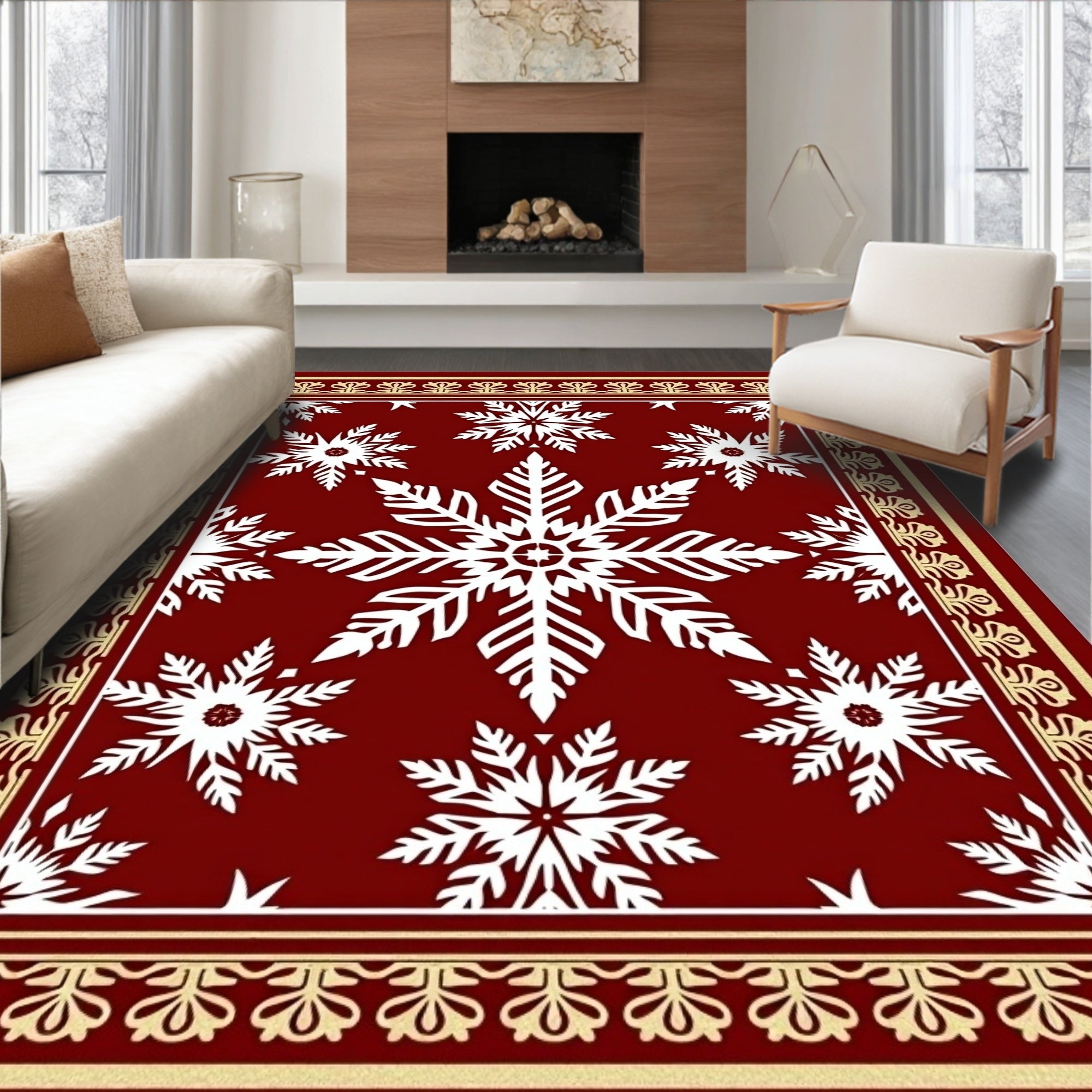 Festive Snowflake Holiday Decorative Floor Covering(Red)