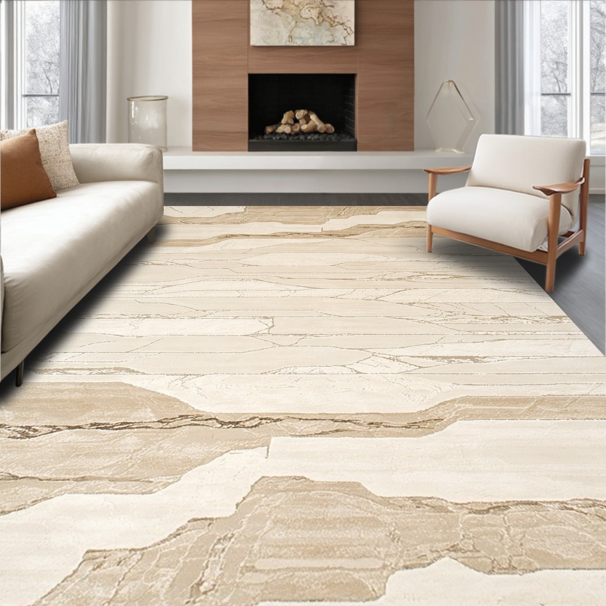 Floor Subtle Abstract Design Beige Grey Tones Large(Beige)
