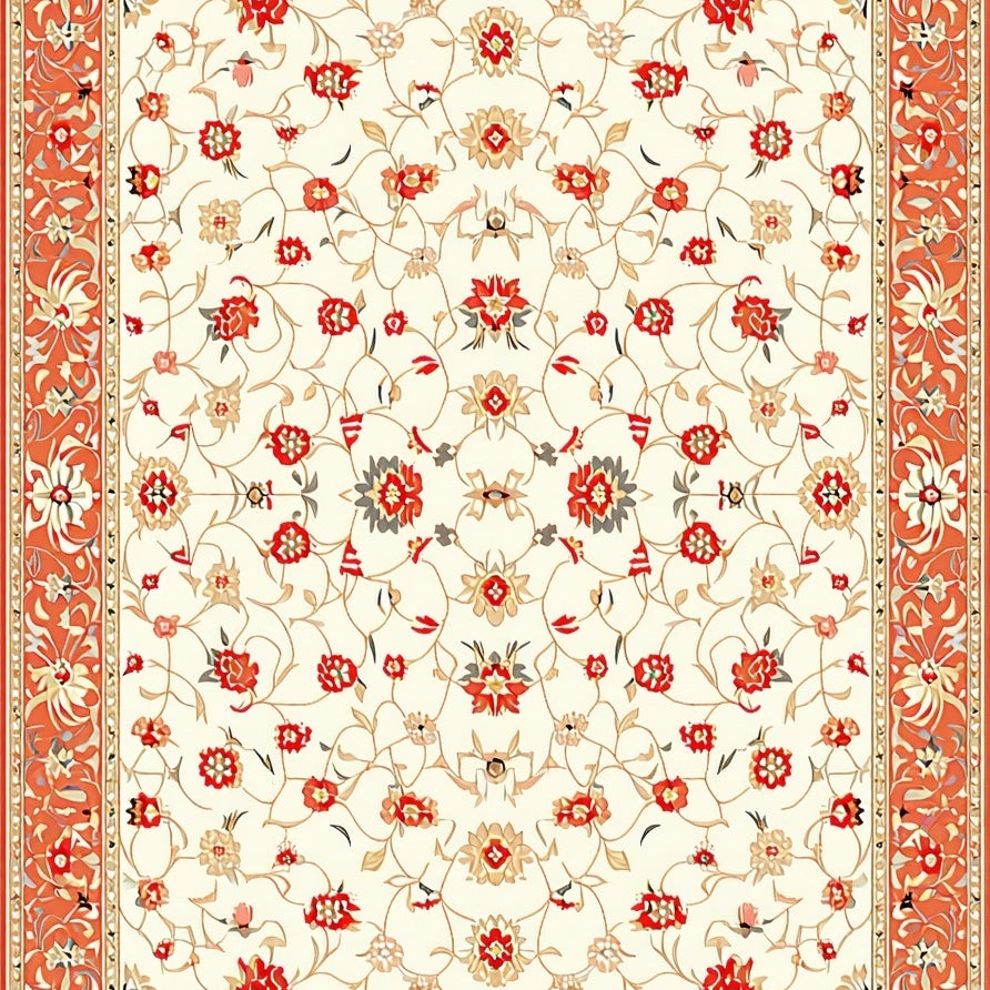Floral Damask Inspired Layout with Ornamental Swirls(Beige)
