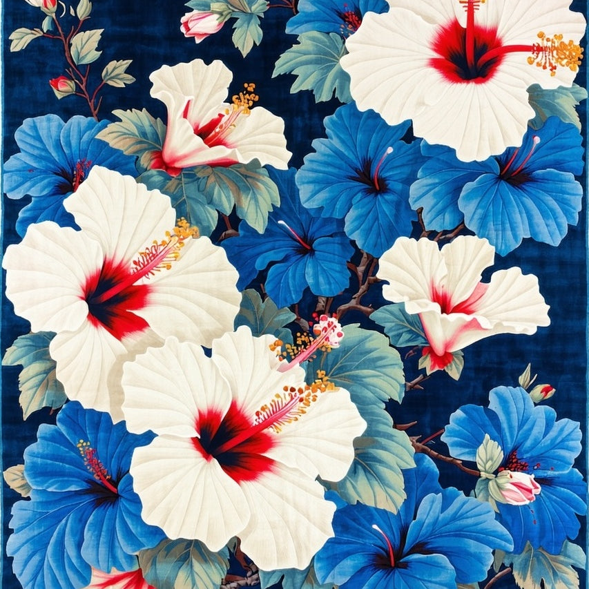 Floral Breeze with Artistic Hibiscus Blooms and Expressive Modern(Blue)