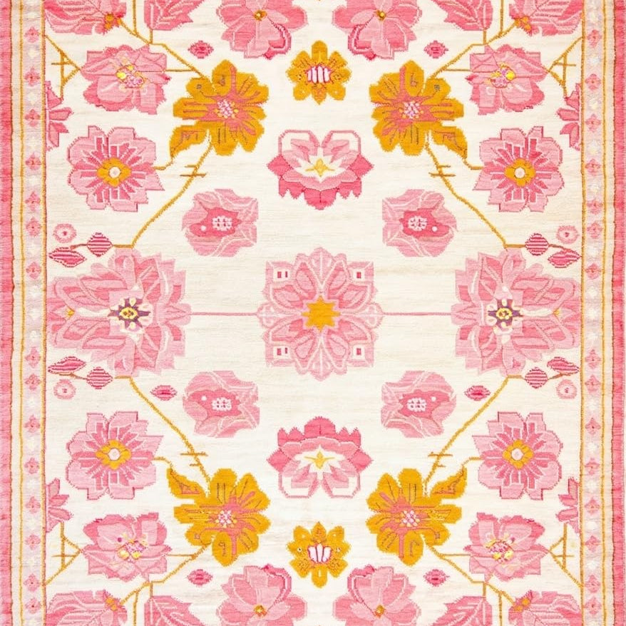 Floral Symphony Beige & Azure Crafted Area(Beige)