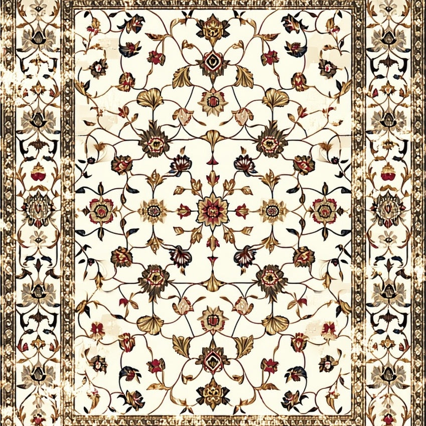 Floral Trellis Geometric Area With Aged Elegance And Artful Fusion(Ivory)