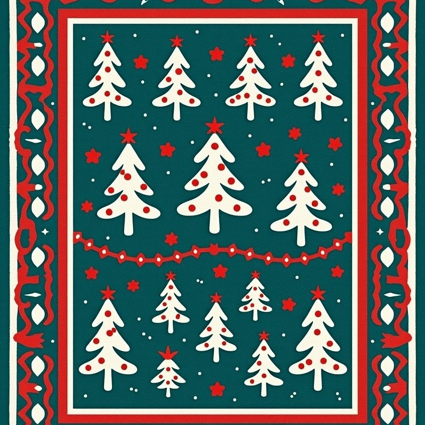 Folk Starburst with Festive Antler Silhouettes and Floral Details(Red)