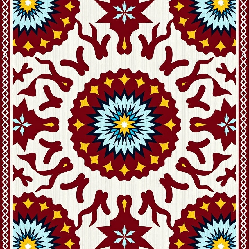 Folk Starburst Medallion Interlocking with Winter Botanical Scrolls(Red)