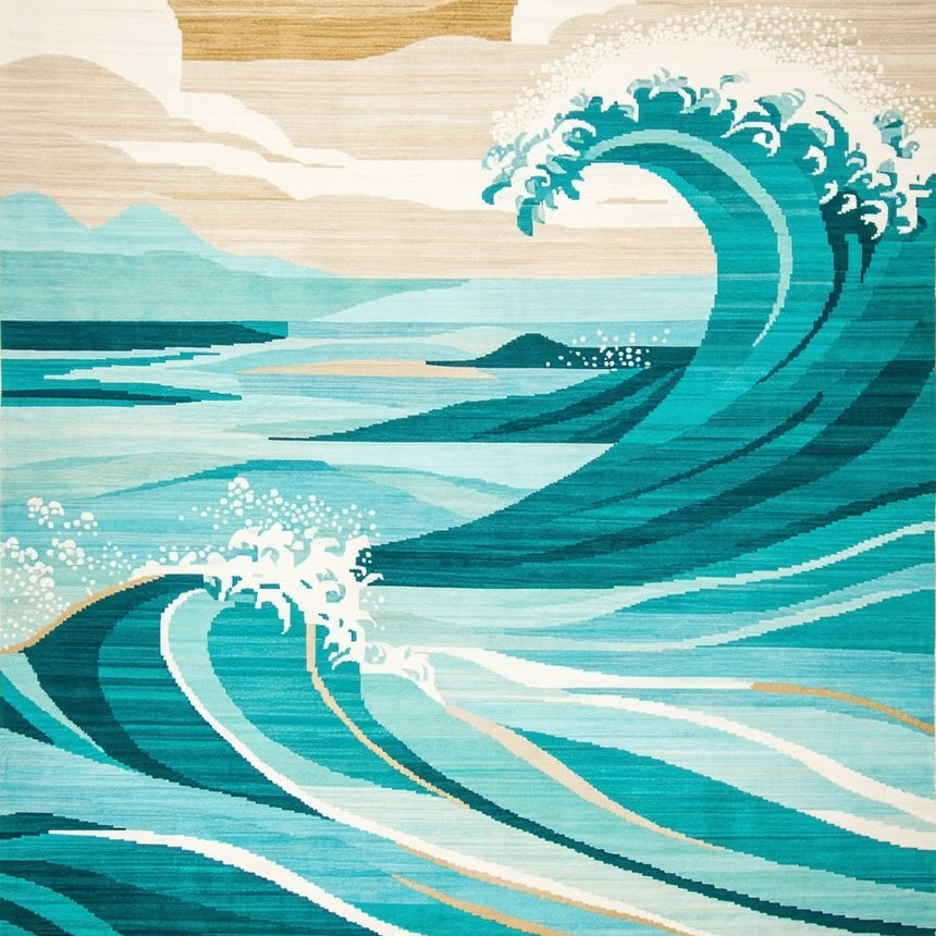 Funky Wave Coastal Area Rug with Aqua and Beige Tones(Blue)