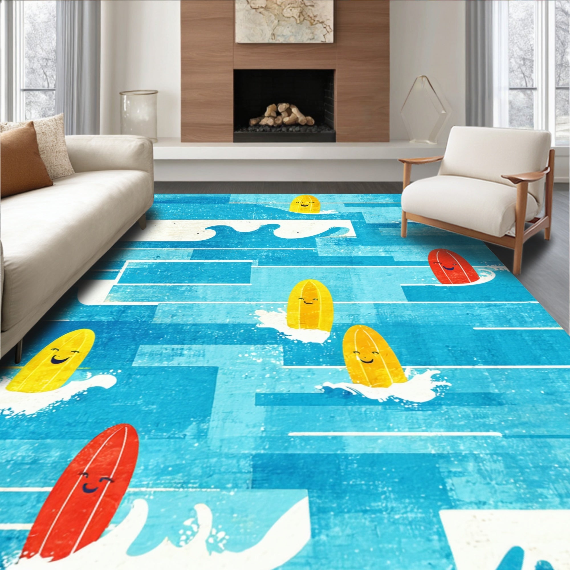 Funny Tropical Surf Absorbent Bath Mat Coastal Ocean Wave Art Design(Blue)