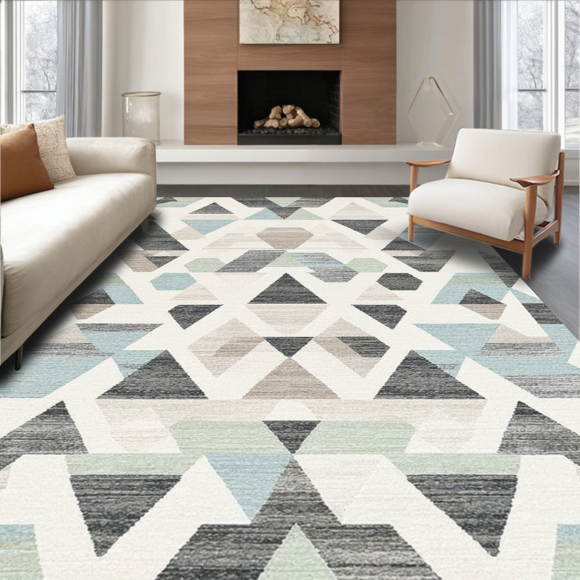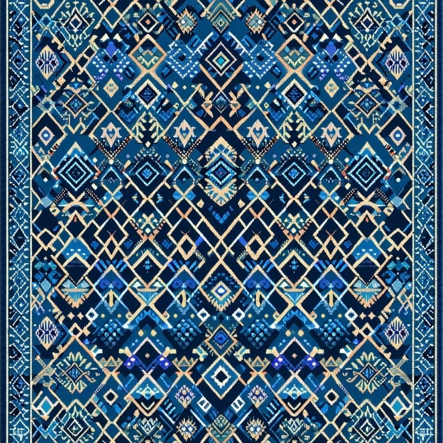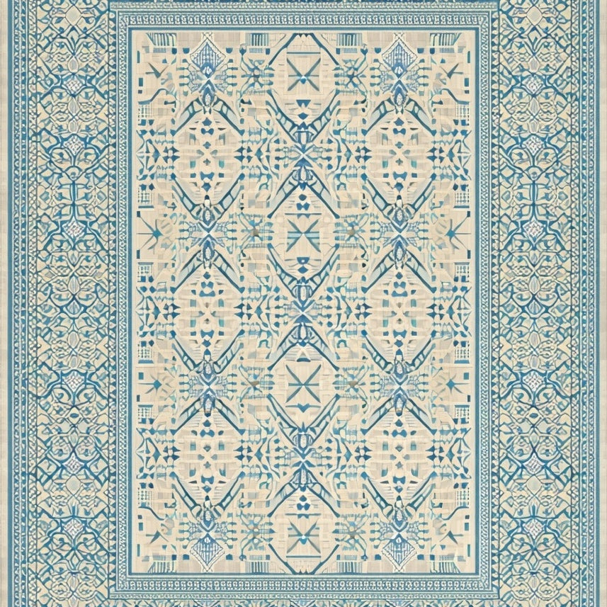 Geometric Blue Beige Area for(Blue)