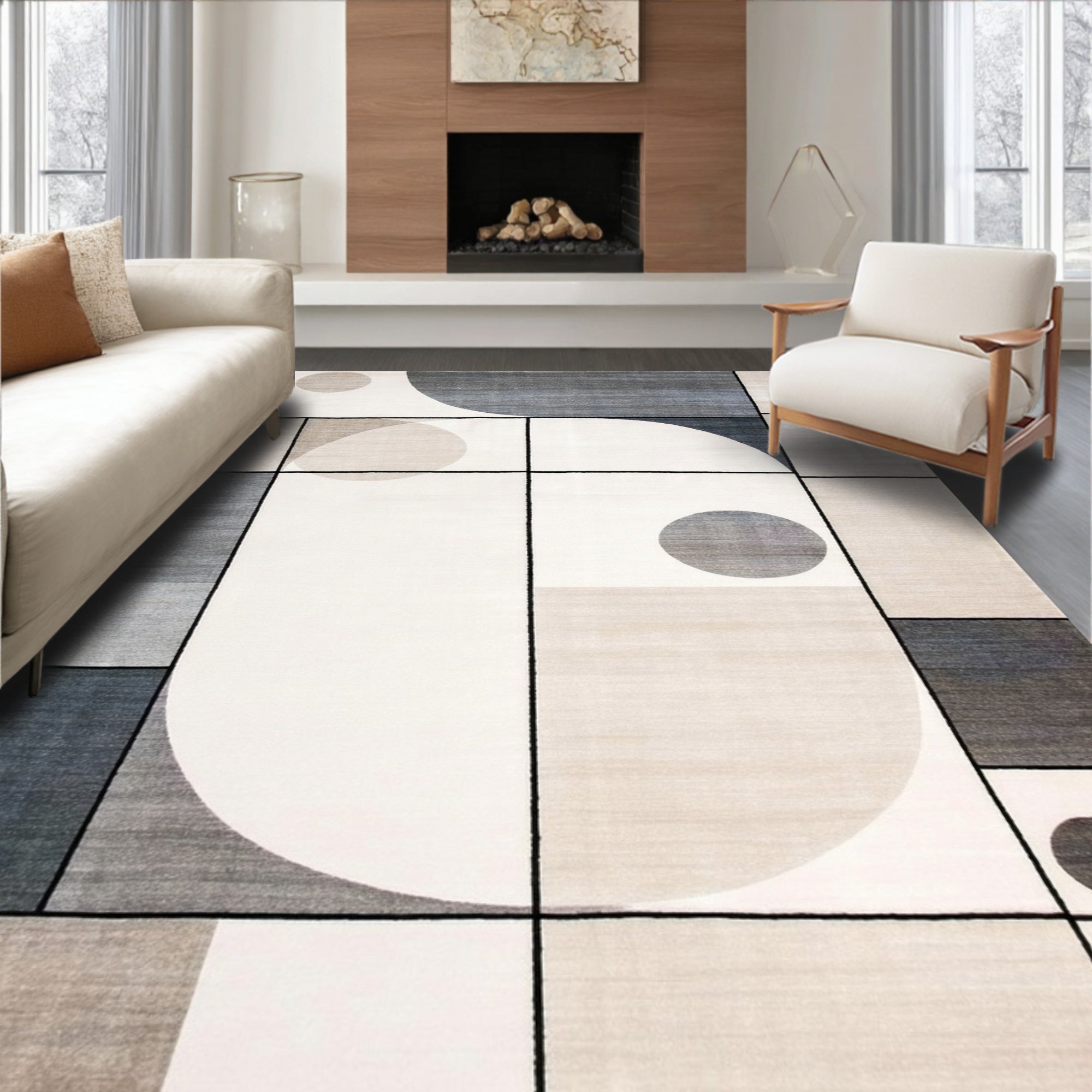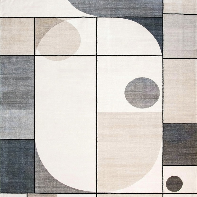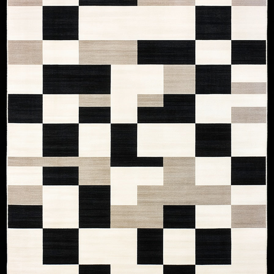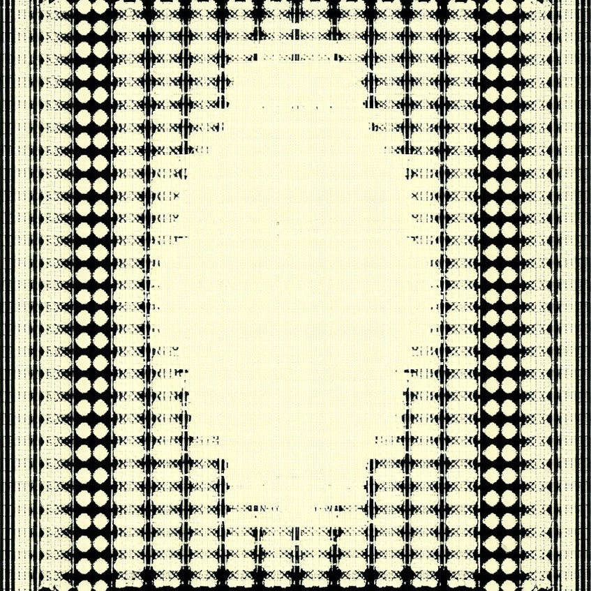 Geometric Border Area Cream and Black Modern Design Neutral Accent(Beige)