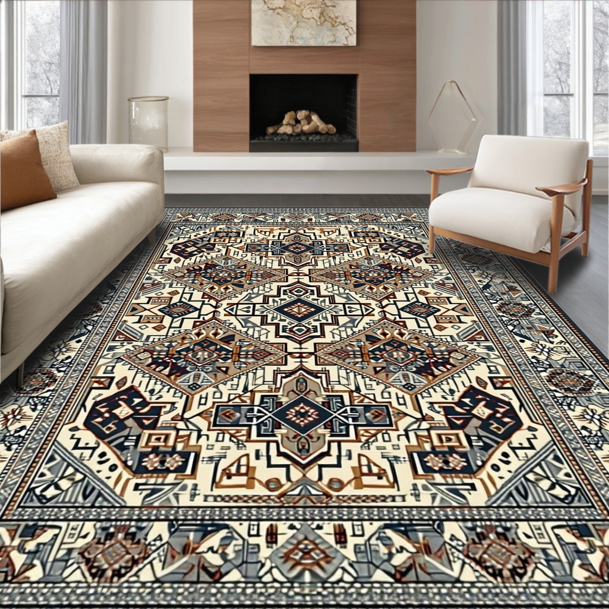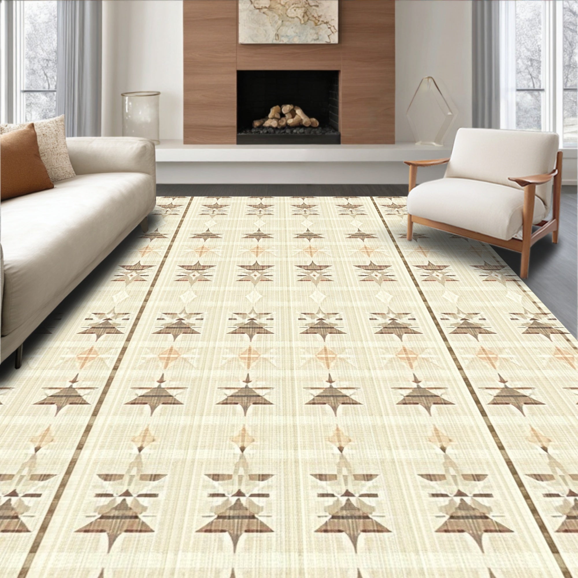 Geometric Boho Style Area for Entrance(Beige)