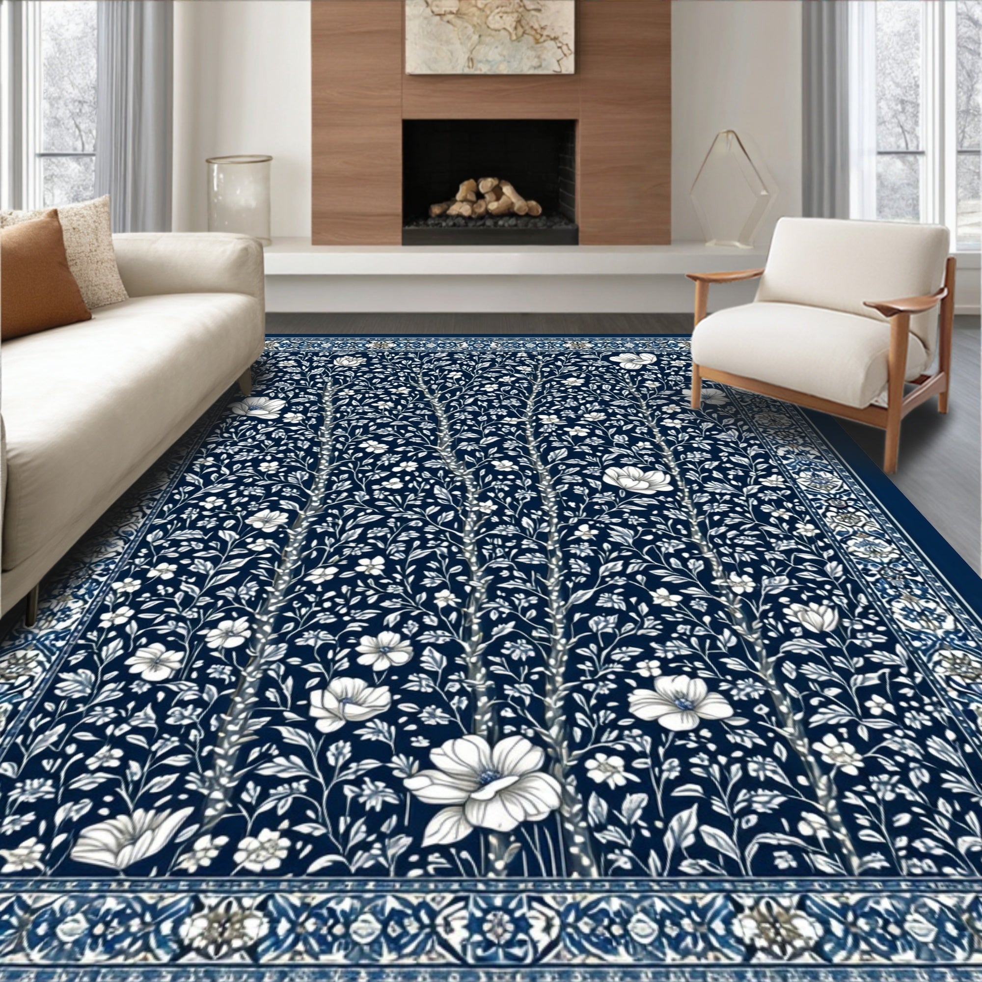 Geometric Borders and Subtle Floral Insets(Beige)