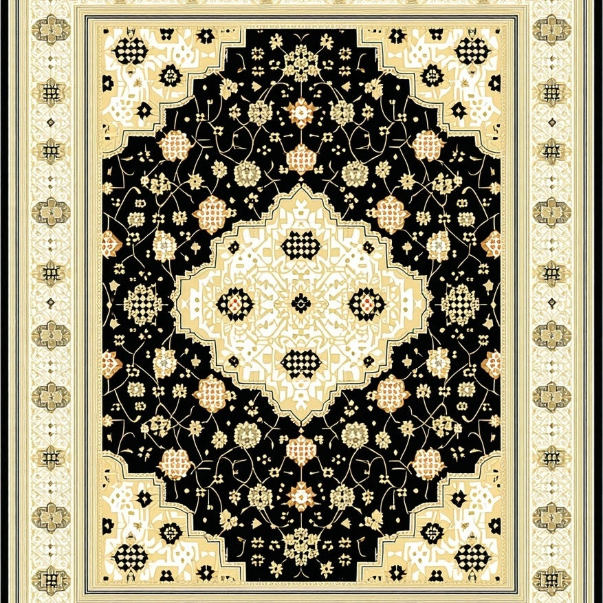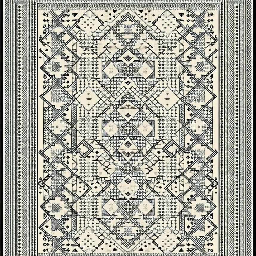 Geometric Cross Medallion Area in Beige and Charcoal(Black)