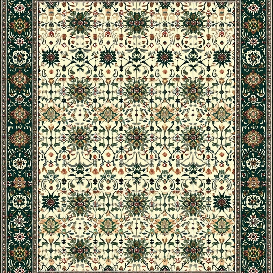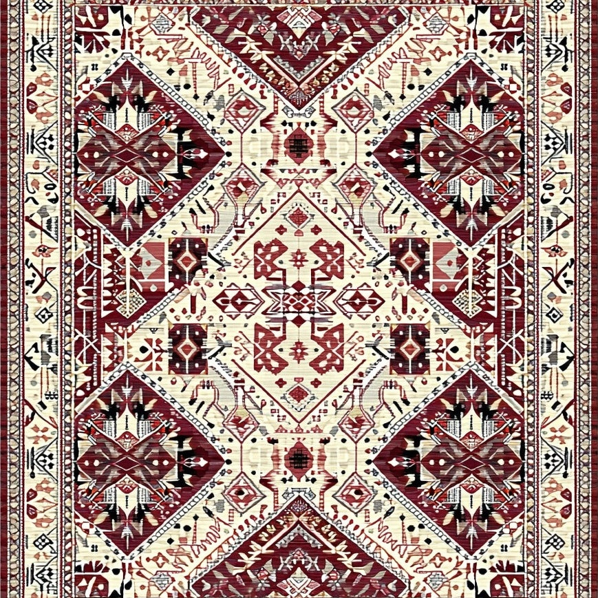 Geometric Botanical Plaid Boho Area(Beige)