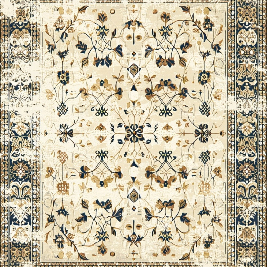 Geometric Botanical Symphony Area With Distressed Vintage Charm(Beige)